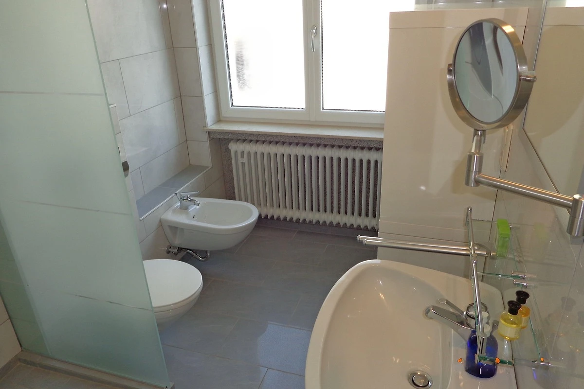 1helles Duschbad mit WC, Bidet, Handwaschbecken,