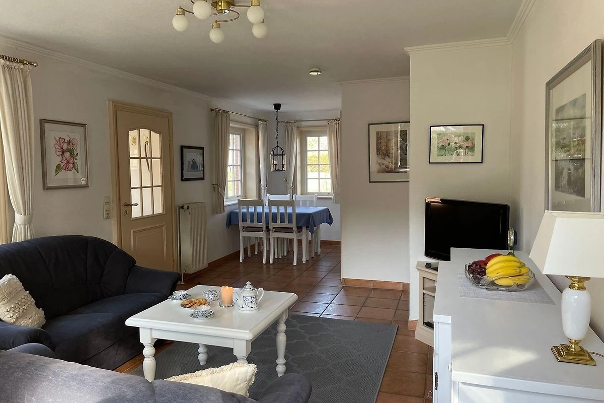 Das frei stehende Reetdachhaus liegt auf einem sonnigen 3000 qm grossen Gartengrundstück und bietet einen einladenden Aussenbereich für die Gäste der vier gepflegten Ferienwohnungen. Jede Wohnung verfügt über eine eigene Terrasse, ausgestattet mit Gartenmöbeln, Sonnenliege und einem gemütlichen Strandkorb. Der Aussenbereich lädt zum Entspannen und Verweilen ein, während die ruhige Lage und die strandnahe Nähe den perfekten Rückzugsort schaffen. Gemeinschaftliche Einrichtungen wie eine Münzwaschmaschine und ein Münztrockner stehen im Untergeschoss zur Verfügung, während Parkplätze und Fahrradständer direkt am Haus bereitgestellt werden. Die Gäste erreichen innerhalb weniger Minuten den Strand sowie den historischen Ortskern von Nebel mit zahlreichen Einkaufsmöglichkeiten. Hunde sind gegen einen Aufpreis willkommen, sodass auch die vierbeinigen Familienmitglieder einen entspannten Urlaub geniessen können.