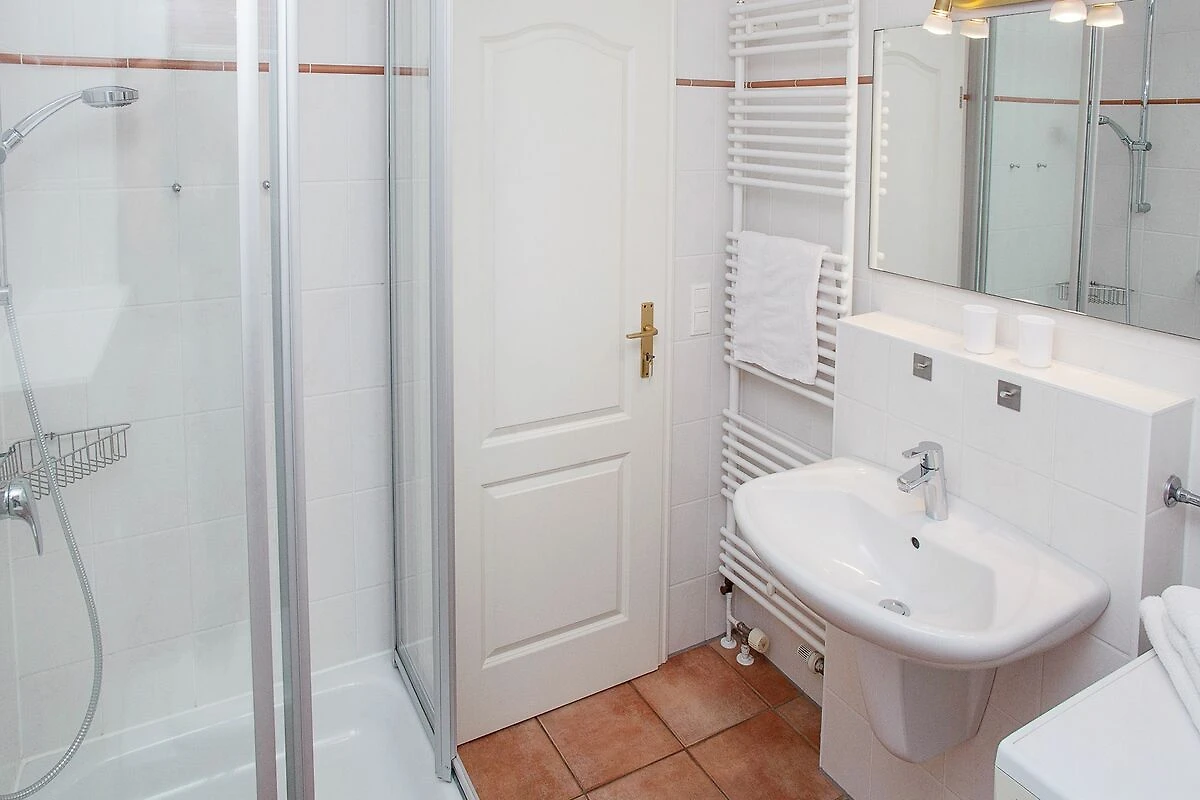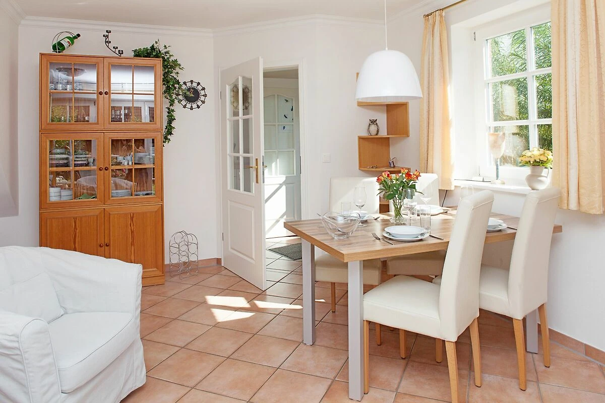 im Erdgeschoss befindet sich der helle und großzügig geschnittene Wohnbereich mit Esstisch, Couch sowie Ausgang auf die hübsche Terrasse (Süden). Die kleine Küche ist bestens ausgestattet und lädt zum Kochen ein. Ebenfalls im Erdgeschoss befindet sich auch eins der beiden Duschbäder. Im Souterrain gibt es zwei Schlafzimmer mit einem Doppel- bzw. zwei Einzelbetten sowie noch ein weiteres Duschbad.