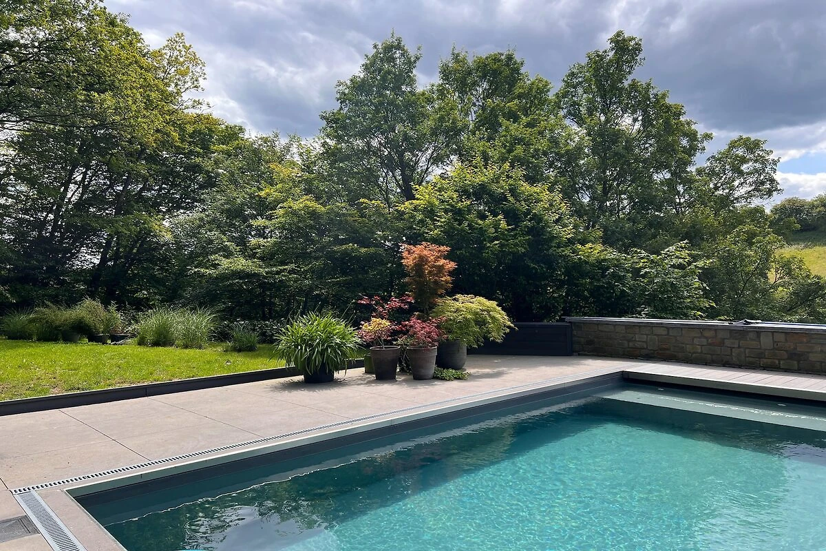 Auch im Außenbereich beeindruckt die Villa mit einem beheizten Swimmingpool, einem Whirlpool, einem Holzkohlegrill und weitläufigen Terrassen, darunter eine zweite Terrasse, die sich perfekt für Sonnenuntergänge eignet. Besonders in der Nebensaison und während großer regionaler Veranstaltungen in der Nähe von Spa-Francorchamps ist diese Villa sehr begehrt und ein seltenes und elegantes Refugium – eine zeitlose Oase in einer der schönsten Gegenden der Ardennen.