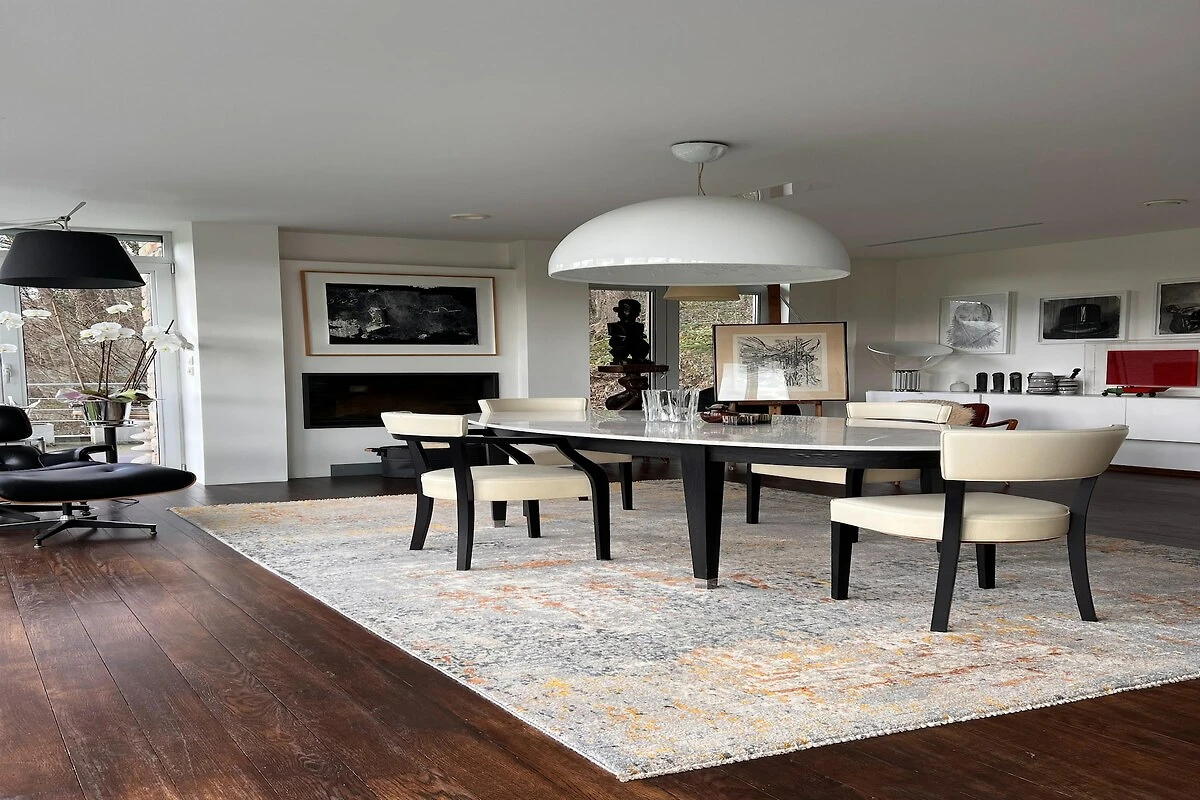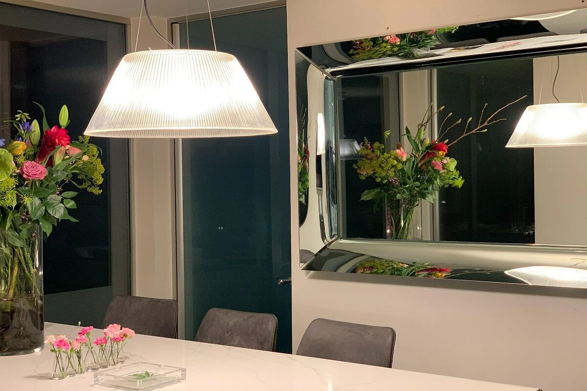 Parterre: (Aufenthaltsraum(Esstisch(6 Personen), Kaminofen, Sitzecke), Aufenthaltsraum(TV(smart TV), Esstisch, Sitzecke), Esszimmer(Esstisch(6 Personen)), Küche(Wasserkocher, Kochendwasserhahn, Toaster, Kochherd, Dunstabzugshaube, Kaffeemaschine, Espressomaschine, Backofen, Mikrowelle, Spülmaschine, Kühlschrank, Tiefkühlschrank, Mixer, Wine glasses), Badezimmer(Dusche(ebenerdige Dusche)), Toilette(Waschbecken), Waschraum)