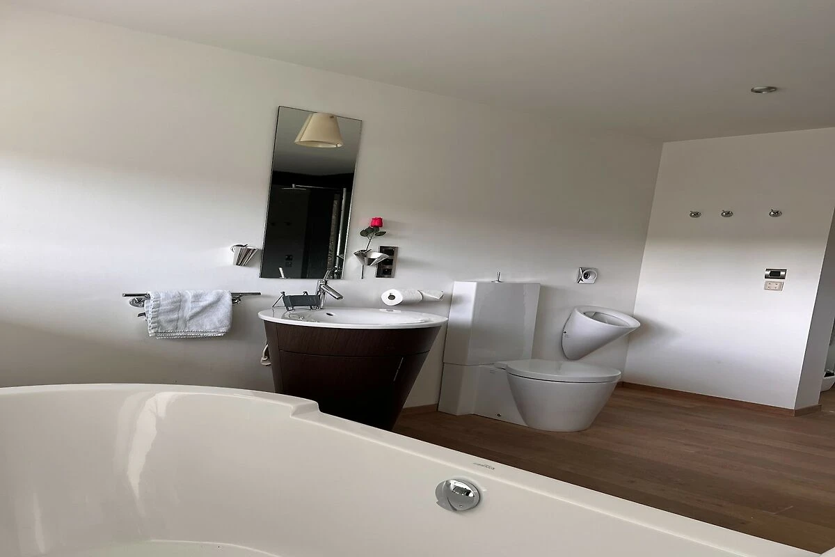 In der 1. Etage: (Schlafzimmer(Doppelbett(160 x 200 cm), TV(smart TV), Sitzecke), Schlafzimmer(Doppelbett(160 x 200 cm), Sitzecke, Babybett), Schlafzimmer(Doppelbett(160 x 200 cm), Sitzecke), Badezimmer(Badewanne, Dusche(ebenerdige Dusche), Waschbecken, Toilette, Urinal), Badezimmer(Badewanne mit Dusche, Waschbecken, Toilette), Badezimmer(Dusche, Waschbecken, Toilette), Ruheraum(TV, Esstisch))