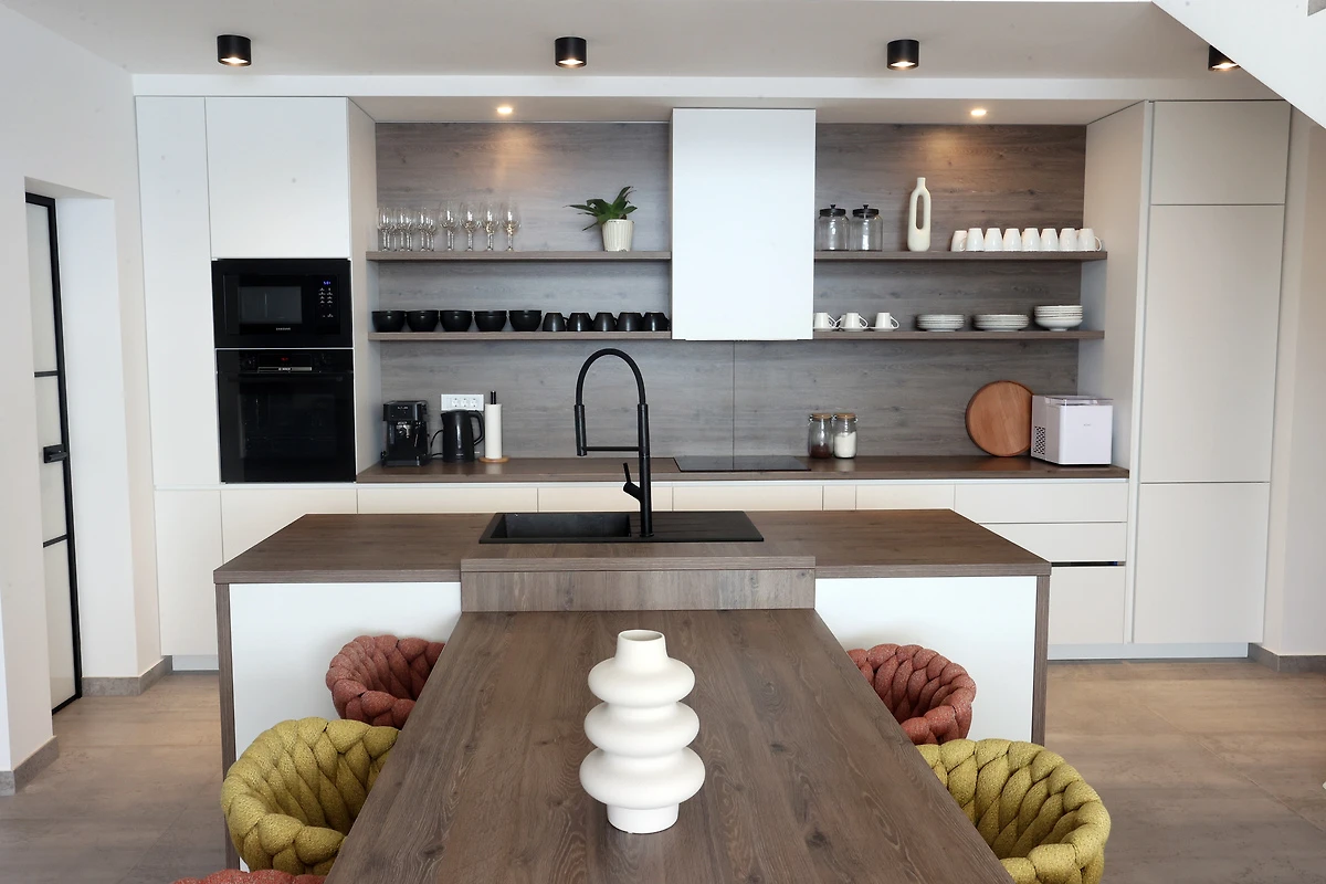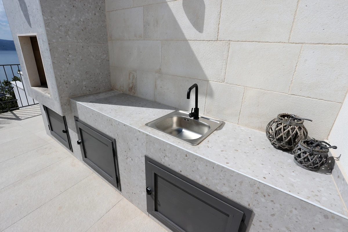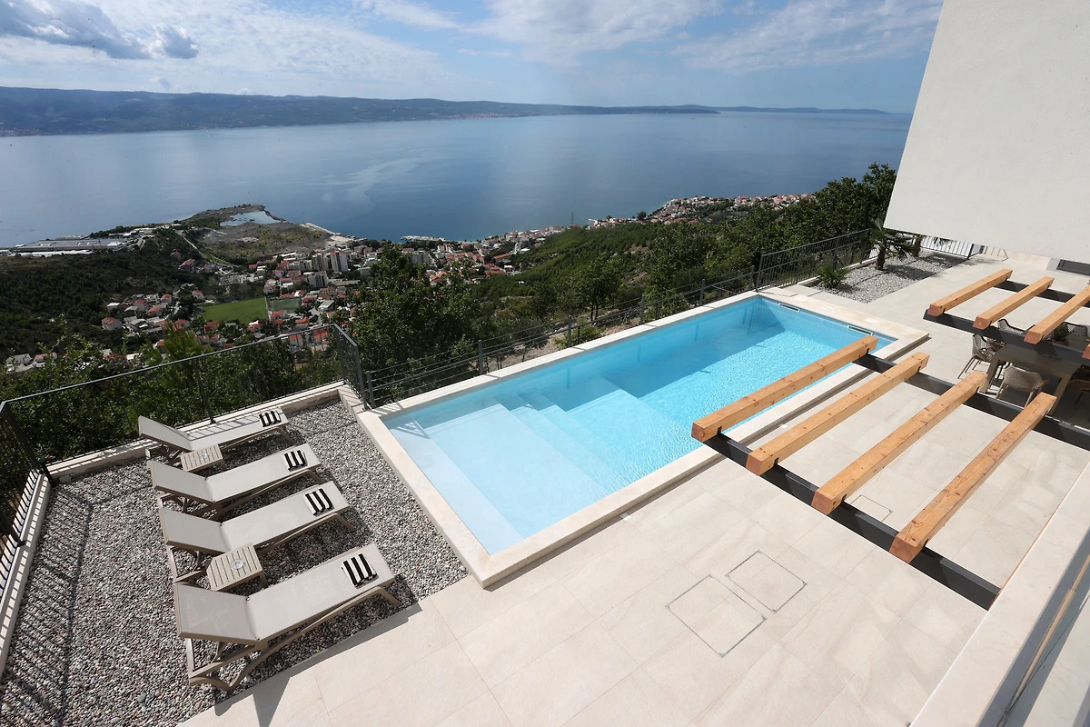 Willkommen im Ferienhaus Erholungsurlaub Duce – Ihrem perfekten Rückzugsort an der Adriaküste, nahe Split. Hier genießen bis zu 10 Gäste auf 200 m² Wohnfläche höchsten Komfort und Privatsphäre in fünf großzügigen Schlafzimmern und fünf modernen Badezimmern. Beginnen Sie den Tag mit einem Kaffee auf dem Balkon und lassen Sie den Blick über das Meer schweifen. Der private Swimmingpool verspricht erfrischende Momente und lädt zum Entspannen auf den bequemen Sonnenliegen ein. Für gesellige Abende steht Ihnen ein BBQ-Grill zur Verfügung, während die voll ausgestattete Küche mit Spülmaschine, Mikrowelle, Wasserkocher und Kaffeemaschine keine Wünsche offenlässt. Bettwäsche ist selbstverständlich vorhanden, ebenso wie TV, WLAN, Klimaanlage und ein eigener Parkplatz direkt am Haus. Familien fühlen sich besonders wohl: Ein Kinderbett und ein Hochstuhl sind vorhanden. Nach einem Strandtag sorgt die Waschmaschine für frische Kleidung; Bügeleisen und Haartrockner erleichtern Ihren Aufenthalt zusätzlich. Die harmonische Einrichtung mit hochwertigen Holzfußböden und stilvollen Möbeln schafft eine besonders gemütliche Atmosphäre. Entdecken Sie die Schönheit Dalmatiens und lassen Sie sich im Ferienhaus Erholungsurlaub Duce verwöhnen – hier werden Urlaubsträume wahr.
