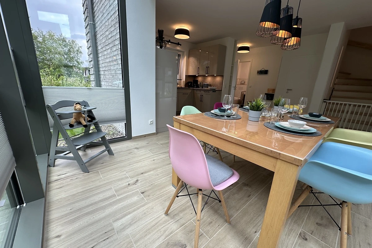 Das Haus liegt im ruhigen Nordseepark Dangast, nur 200m vom Strand entfernt. Der Spielplatz ist vom Küchenfenster aus sichtbar. Zum UNESCO Weltnaturerbe Wattenmeer sind es wenige Gehminuten. Wattwanderungen, Kutterfahrten und der Zoo Jaderpark sind beliebte Ausflugsziele.