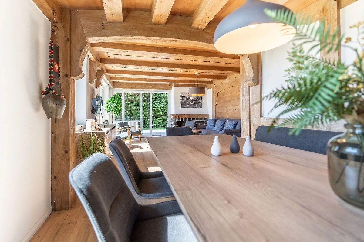 Das Haus verfügt über fünf Parkplätze, die Ihnen und Ihren Mitreisenden bequeme Anreise und Abreise ermöglichen. Für all Ihre Outdoor-Ausrüstung, sei es Skier oder Fahrräder, steht Ihnen eine geräumige Garage zur Verfügung. So können Sie Ihre sportliche Ausrüstung sicher aufbewahren und haben gleichzeitig mehr Platz im Haus. Auf 168 Quadratmetern Wohnfläche bietet die "Alpe 44" ausreichend Raum für alle Gäste. Die vier geschmackvoll eingerichteten Schlafzimmer beherbergen insgesamt acht komfortable Betten, die Ihnen erholsame Nächte garantieren. Egal, ob Sie mit Familie oder Freunden anreisen, es gibt genug Platz für alle. Der grosszügige Wohn- und Essbereich ist der perfekte Ort, um gemeinsame Momente zu geniessen. Hier können Sie gemütliche Abende vor wunderbarer Bergkulisse verbringen, Ihre Lieblingsspeisen in der gut ausgestatteten Küche zubereiten oder sich zu köstlichen Mahlzeiten im Essbereich niederlassen. Für die jüngsten Gäste gibt es ein separates Spielzimmer, in dem sie sich austoben können. Die Ankleide bietet zusätzlich Platz für Ihre Kleidung und Gepäck. Das Haus verfügt über zwei Badezimmer mit Toiletten, was besonders morgens und abends einen reibungslosen Ablauf ermöglicht. Eine zusätzliche separate Toilette sorgt für noch mehr Bequemlichkeit.