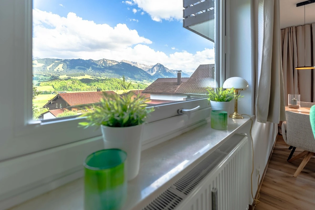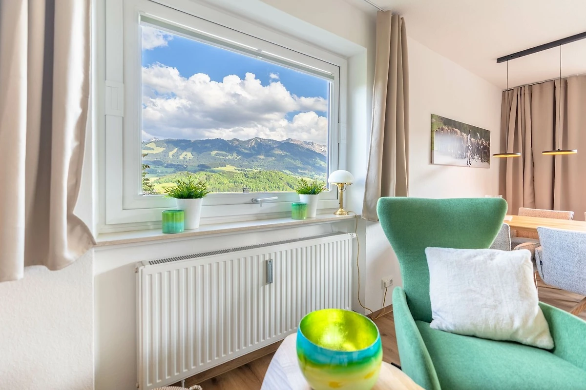 Die Ferienwohnung "Alphorn" in Ofterschwang bietet mit ihren 45 m² Platz für maximal 2 Personen. Sie verfügt über ein Wohnzimmer mit Essbereich, Schlafzimmer und ein Badezimmer mit Dusche. Zur Ausstattung gehört WLAN/Internet, TV, ein Balkon mit herrlichem Bergblick, Fahrradkeller, Skiraum und eine gem. Waschmaschine im Haus.