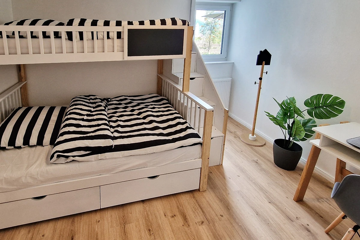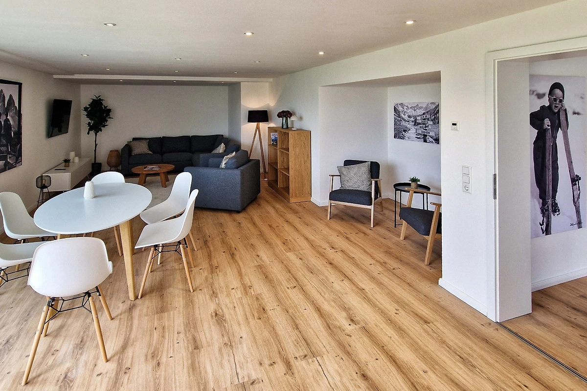 Die Ferienwohnung "Chalet 44" in Ofterschwang bietet auf 102 qm ausreichend Platz für maximal 4 Personen. Sie ist ideal geeignet für eine Familie (Eltern und zwei Kinder) oder drei Erwachsene (und ein Kind). Die Wohnung verfügt über 2 gemütliche Schlafzimmer (ein grosses Schlafzimmer mit Doppelbett und ein kleineres Schlafzimmer mit Stockbett). Das Stockbett ist für einen Erwachsenen (unten) und ein Kind (oben), oder für zwei Kinder (unten und oben) geeignet, nicht jedoch für zwei Erwachsene. Des Weiteren verfügt die Wohnung über ein Badezimmer sowie ein separates WC. Der grosszügige Wohn- und Essbereich ist der perfekte Ort, um gemeinsame Momente zu geniessen. Hier können Sie gemütliche Abende vor wunderbarer Bergkulisse verbringen, Ihre Lieblingsspeisen in der gut ausgestatteten Küche zubereiten oder sich zu köstlichen Mahlzeiten im Essbereich niederlassen.