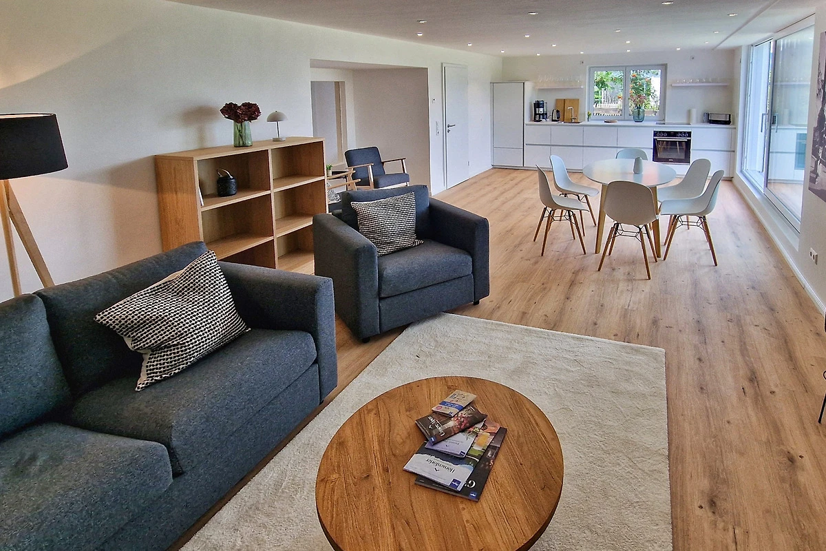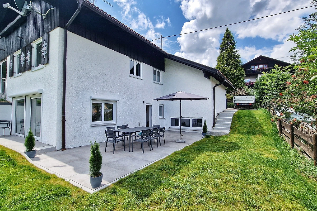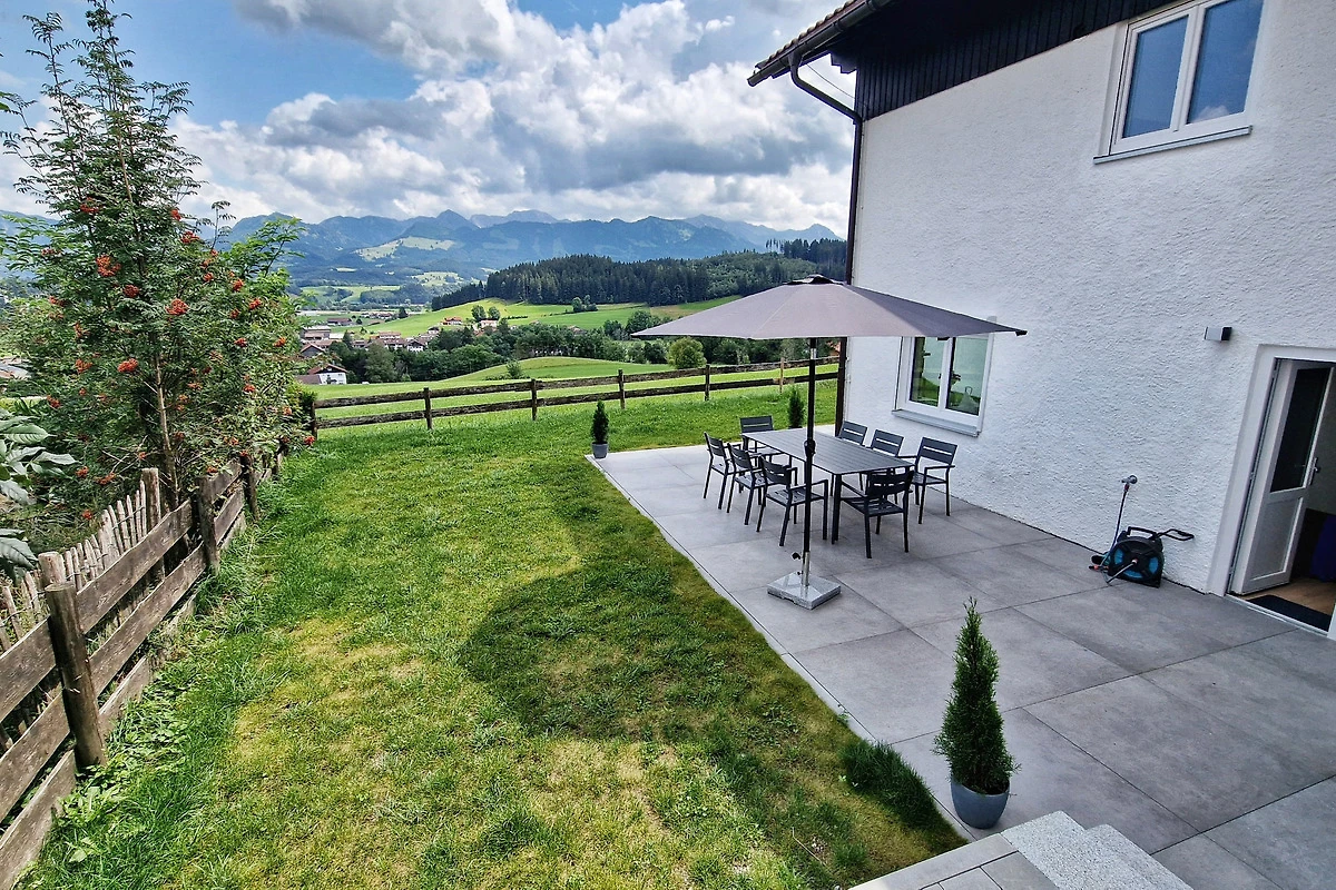 Ein weiteres Highlight sind die Terrasse und der Garten (zusammen [gt] 100 Quadratmeter gross). Hier eröffnet sich Ihnen ein traumhafter Blick auf die Allgäuer Berge. Geniessen Sie Ihr Frühstück unter freiem Himmel, lassen Sie sich von der Sonne wärmen oder erleben Sie unvergessliche Sonnenuntergänge. Um die Ruhe und Harmonie in der Nachbarschaft zu respektieren, sind Junggesellenabschiede und ähnliche Gruppenfeiern untersagt.