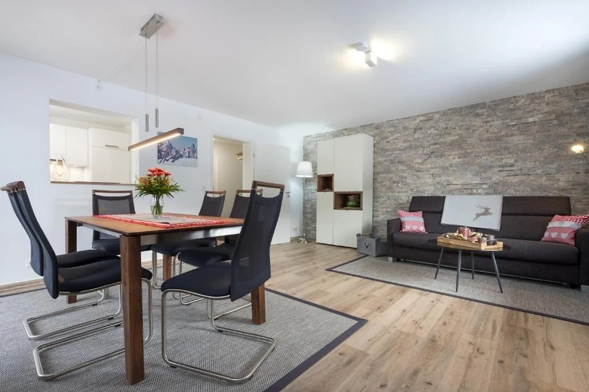 Diese moderne und freundliche Ferienwohnung wird Ihnen gleich bei Anreise Freude bereiten. Das helle und gemütliche Wohnzimmer mit der Durchreiche zur Küche und dem Essbereich bietet Ihnen ausreichend Platz für schöne Stunden. Die Küche ist voll ausgestattet und lässt keine Wünsche offen, um einen entspannten Urlaub zu verbringen. Im Schlafzimmer finden Sie ein modernes Boxspringbett vor und die grossen Schränke im Ankleidebereich bieten ausreichend Stauraum für Ihre Urlaubsgarderobe. Das freundliche und moderne Bad verfügt u. a. über ein Fenster, eine grosse Dusche und einen Handtuchtrockner. Vom Wohnzimmer aus gelangen Sie auf den grosszügigen Balkon, von wo aus Sie die tolle Aussicht in die Allgäuer Bergwelt geniessen und den Tag bei einem Glas Wein gemütlich ausklingen lassen können.