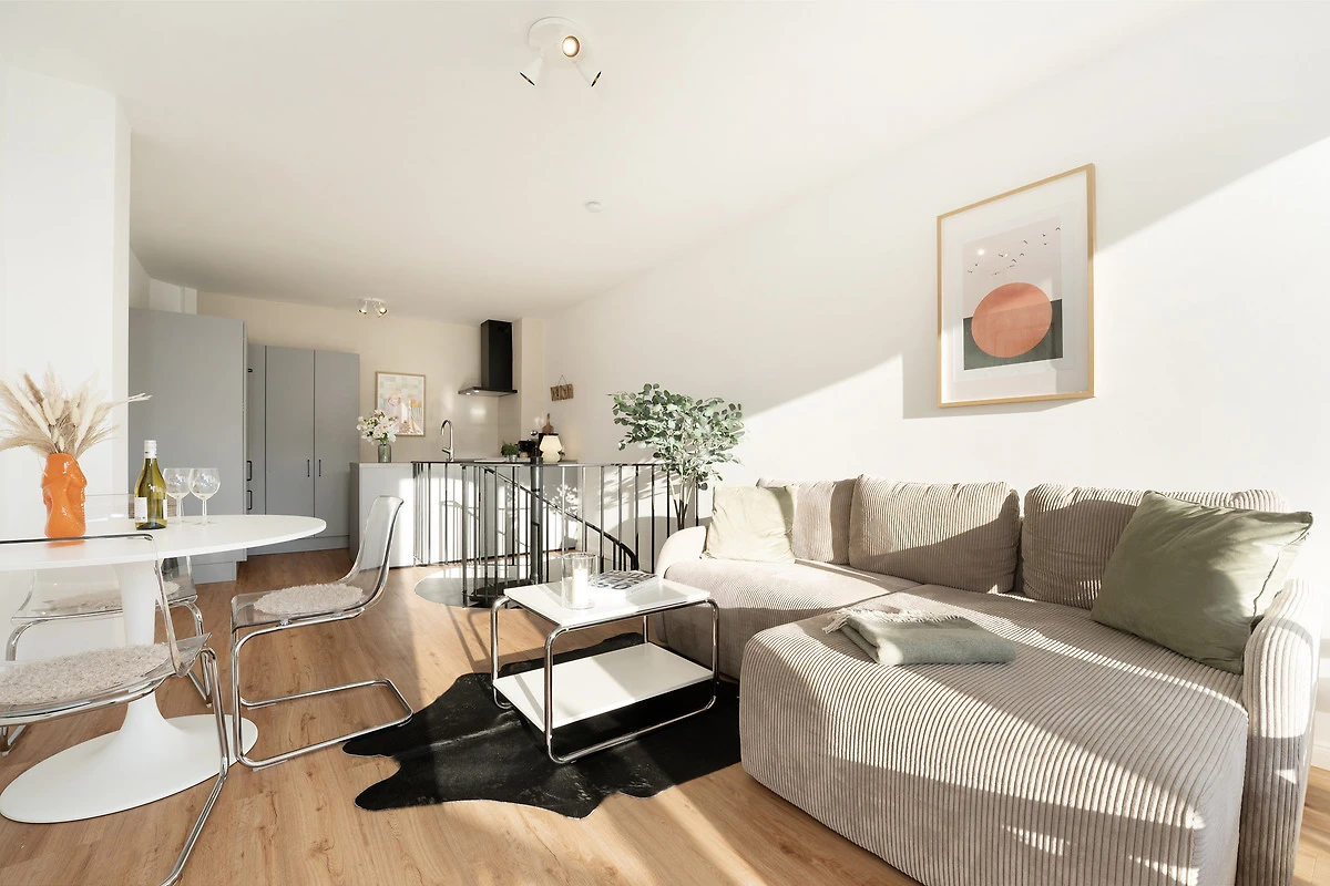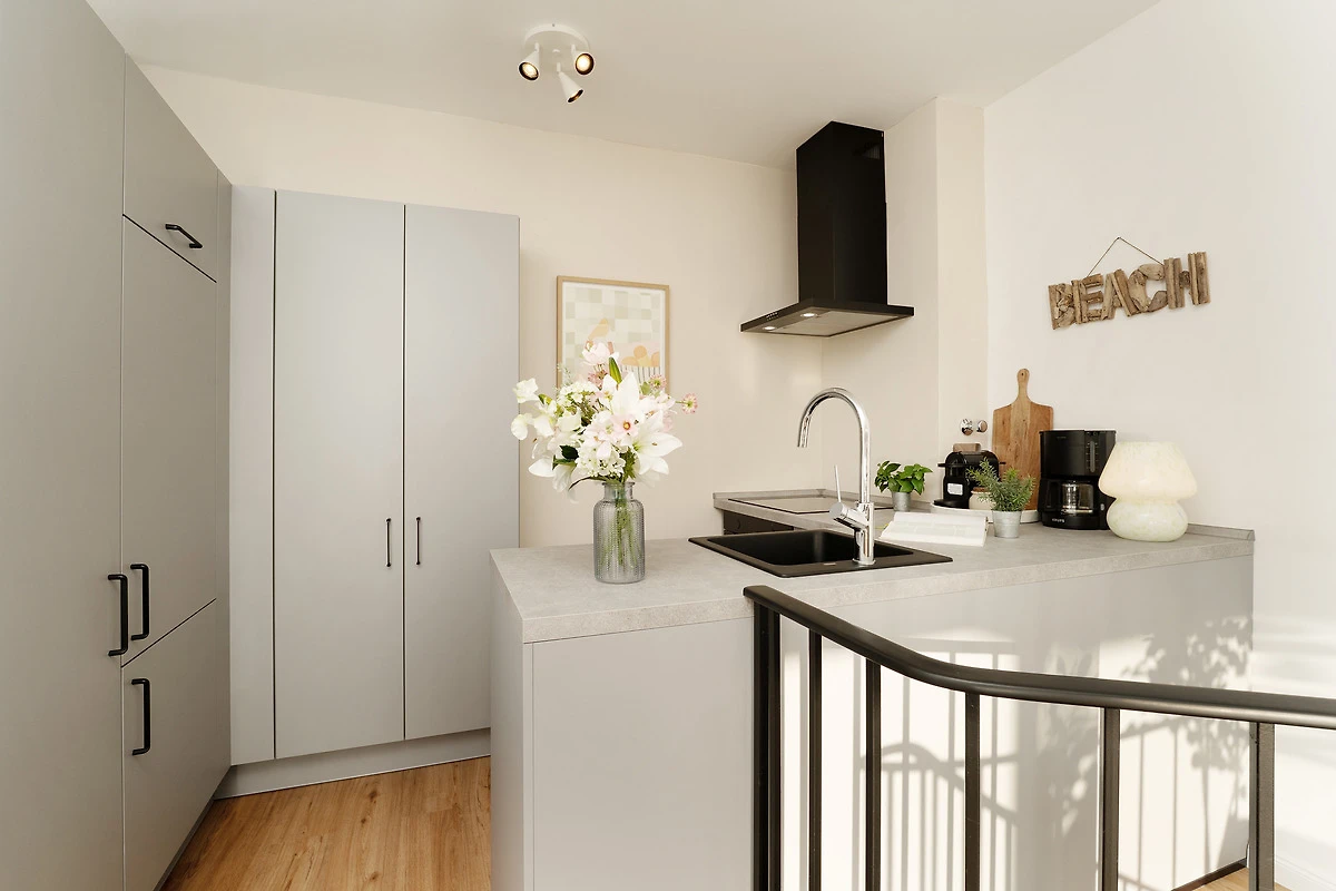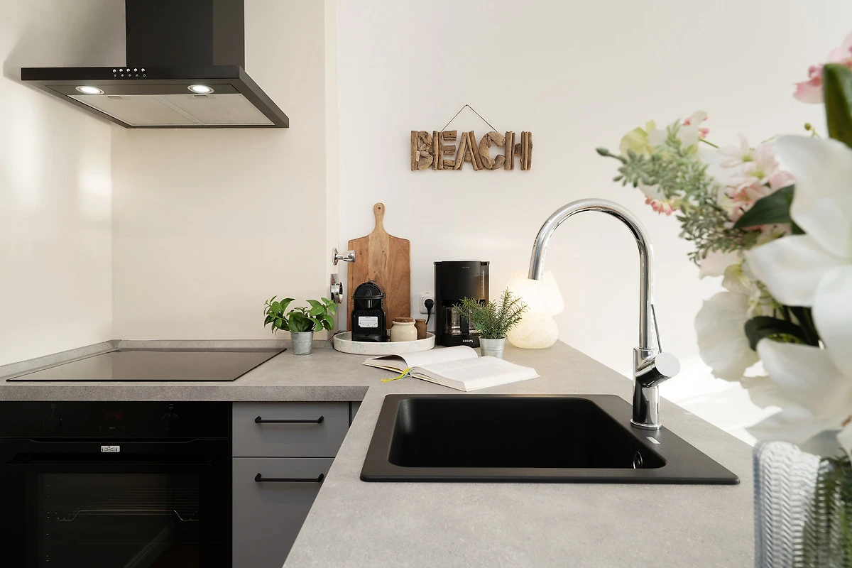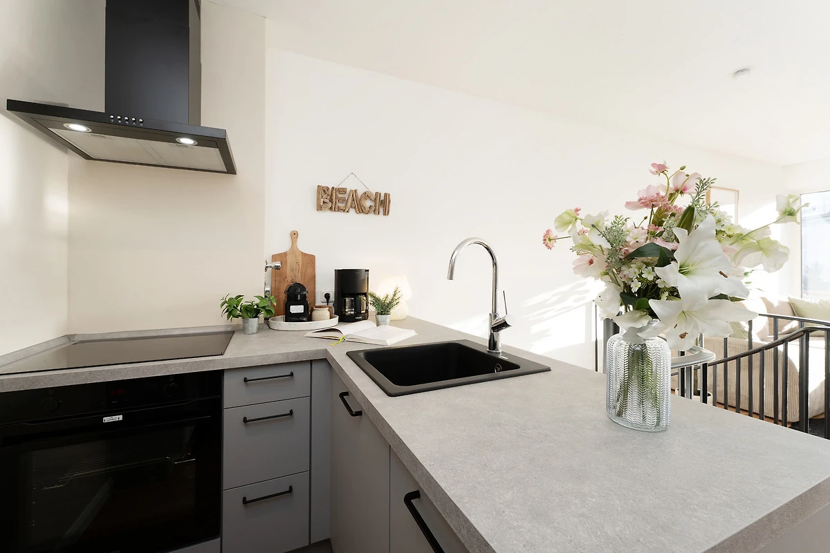 In der offenen Küche starten Sie morgens mit einem frischen Kaffee entspannt in den Tag. Der Essbereich grenzt harmonisch an und bietet ausreichend Platz für gemeinsame Mahlzeiten. Das gemütliche Sofa lässt sich abends in einen bequemen Schlafplatz für einen dritten Gast verwandeln. Im separaten Schlafzimmer sorgt ein komfortables Doppelbett für ruhige Nächte. Das modern ausgestattete Badezimmer verfügt über eine Dusche, WC und Haartrockner.