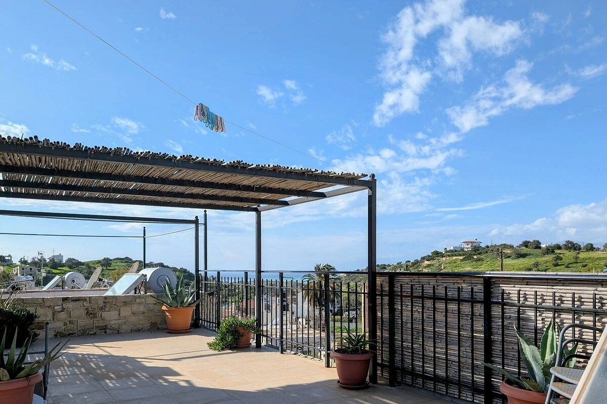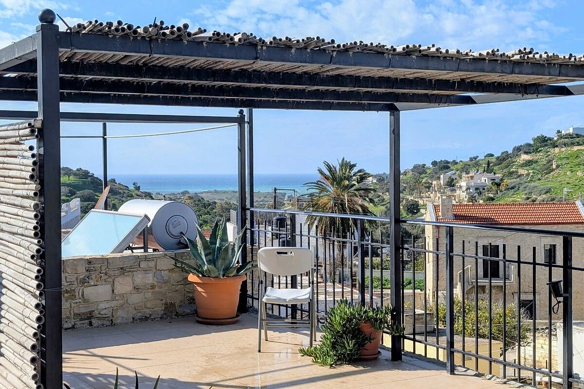 Die Dachterrasse ist ein echtes Highlight: Sie bietet einen wunderschönen Meerblick, ein beeindruckendes Bergpanorama sowie Ausblick auf die umliegenden Dorfhäuser. Ein Schattendach sorgt für angenehme Stunden auch an heißen Tagen.