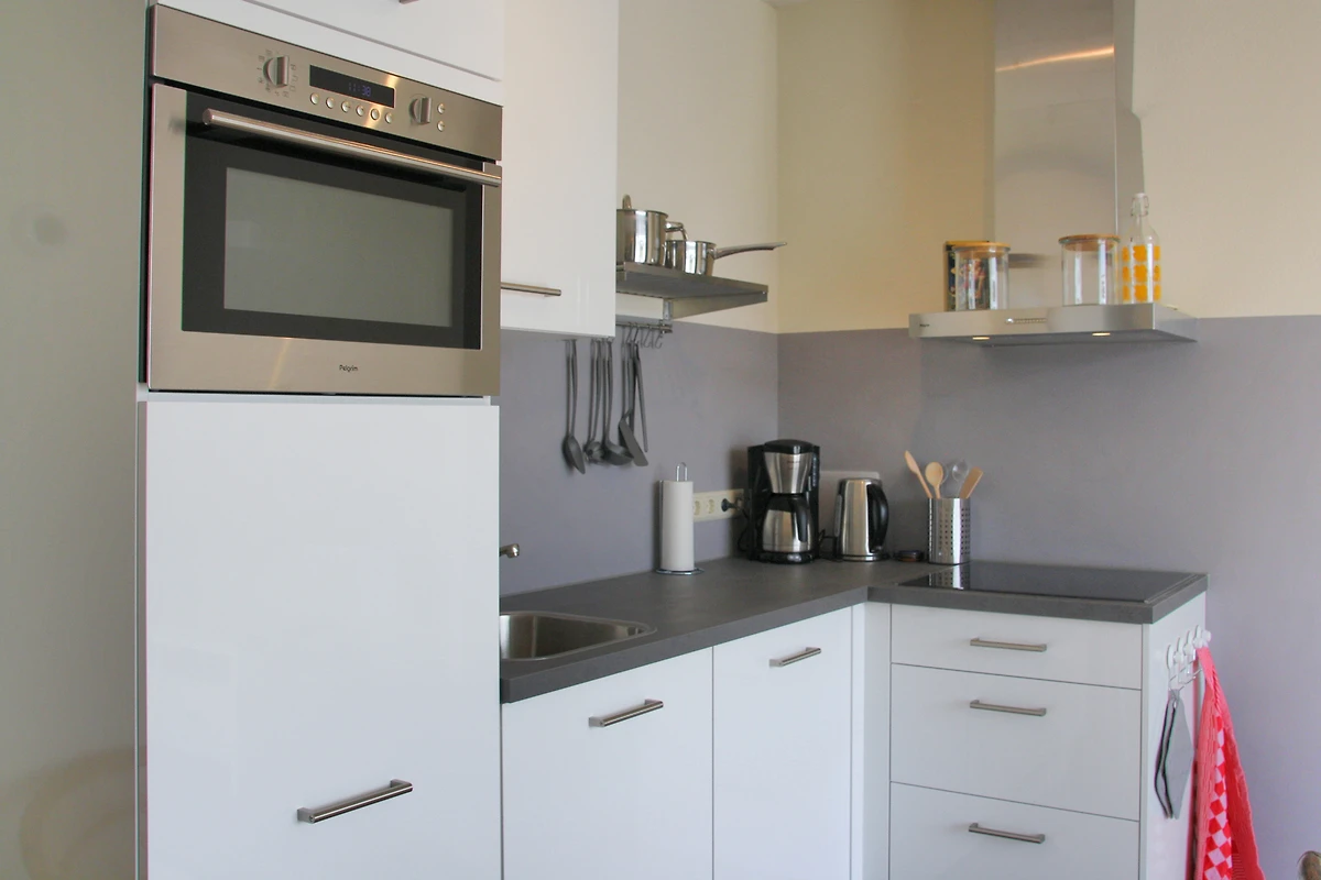 Im hellen Wohnbereich erwartet Sie eine offene Wohnküche, die alles bereithält, was Sie für einen unbeschwerten Aufenthalt brauchen: Spülmaschine, Mikrowelle, Kaffeemaschine und Gasherd. Der gemütliche Essbereich und der Wohnraum mit TV laden zu entspannten Abenden ein. Natürlich steht Ihnen auch kostenloses WLAN zur Verfügung.