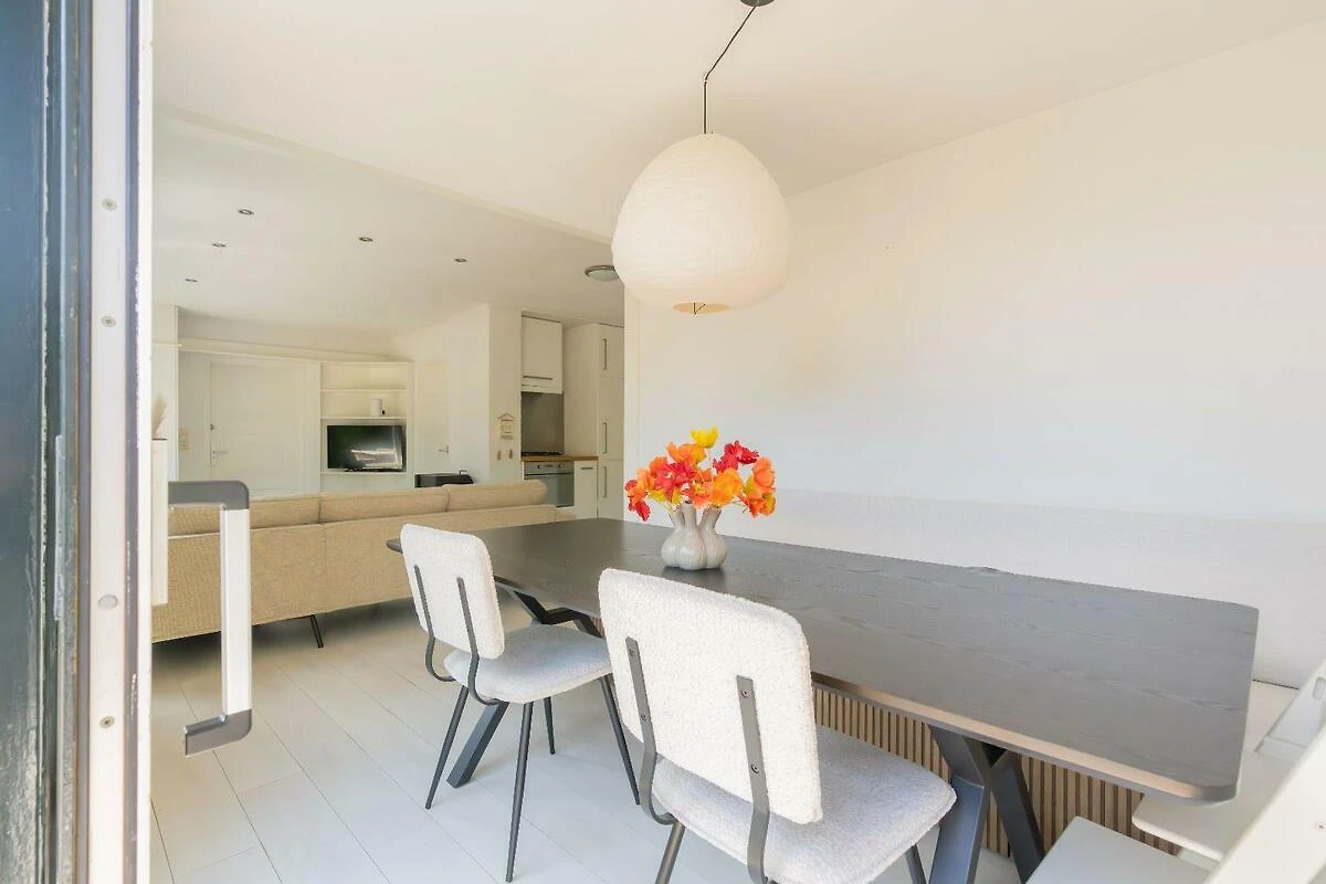 Das geschmackvoll eingerichtete, helle Wohnzimmer verfügt über eine Sitzecke mit komfortablem Ecksofa. Es gibt kostenloses WLAN und einen SMART-TV auf dem Sie u.a. NETFLIX (über Ihren eigenen Account) sowie eine große Senderauswahl empfangen können. Vom Essbereich für 4 Personen gelangen Sie auf die sonnige Terrasse, die mit einer Gartengruppe für 6 Personen und 2 Sonnenliegen ausgestattet ist. Hier können Sie den Tag mit einem Frühstück beginnen und abends bei einem Glas Wein und einem BBQ ausklingen lassen.
