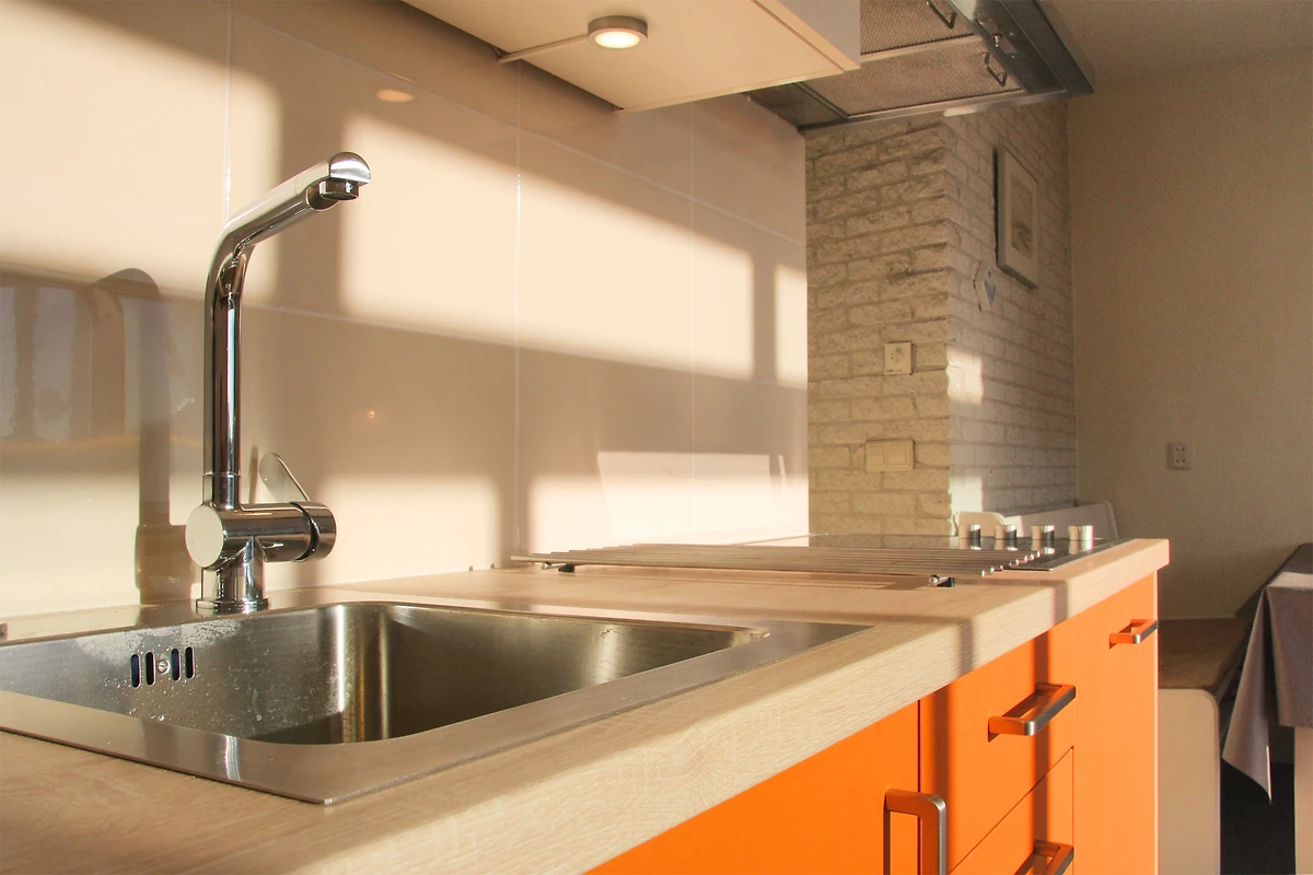 Im hellen Wohnbereich mit offener Küche können Sie gemeinsam kochen, essen und entspannen. Die Küche ist gut ausgestattet mit unter anderem Spülmaschine, Mikrowelle/Backofen und Kaffeemaschine. Der gemütliche Wohnraum mit TV lädt zu entspannten Abenden ein. Kostenloses WLAN steht selbstverständlich zur Verfügung.