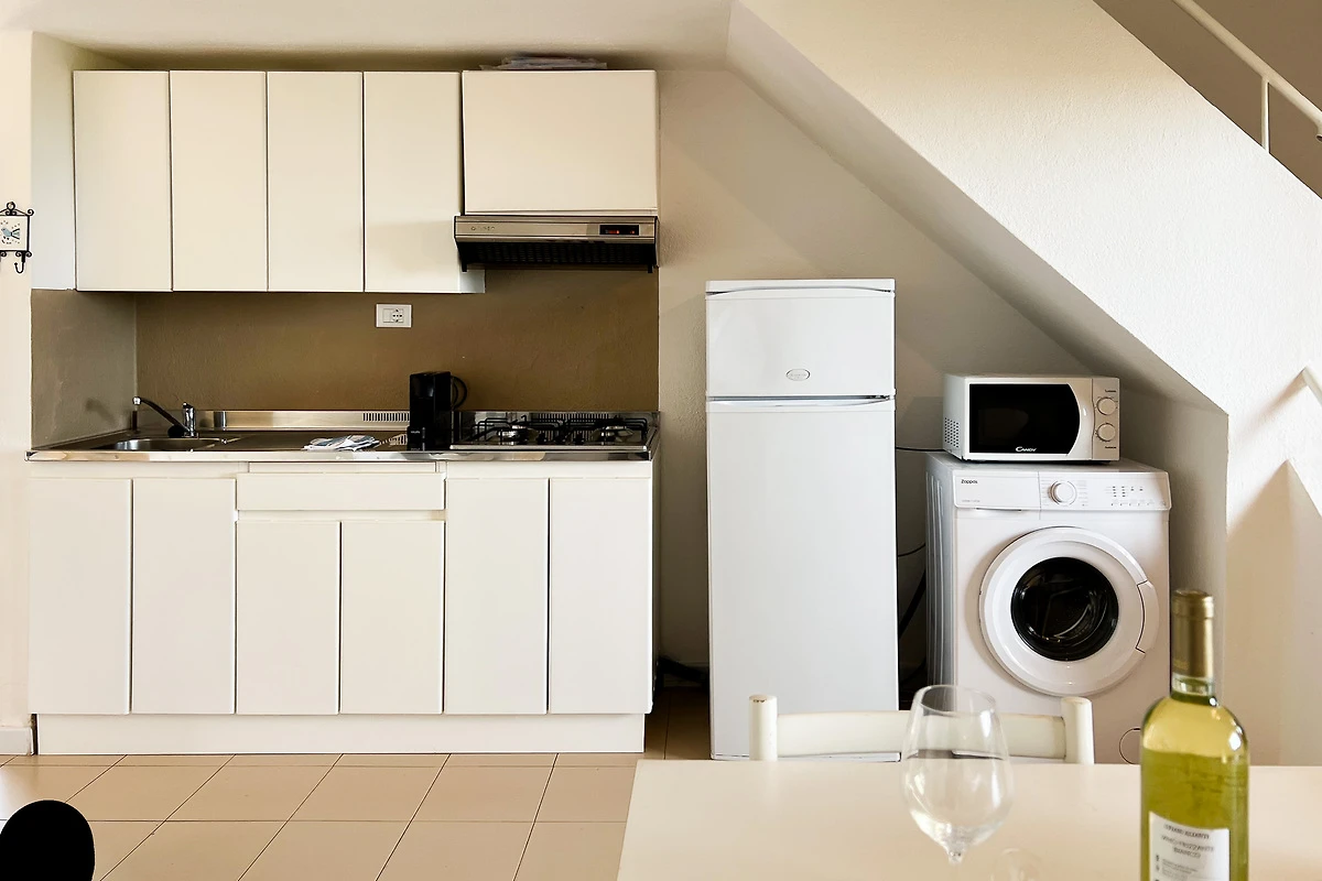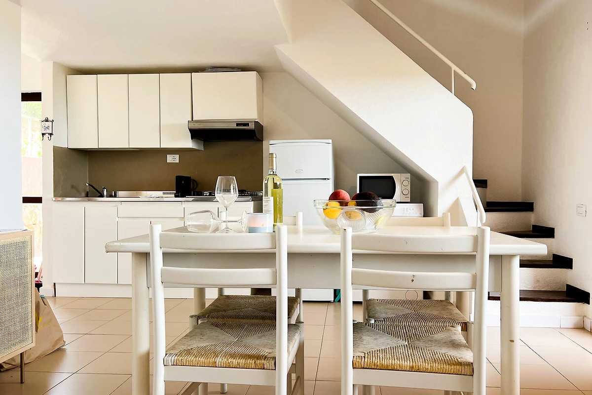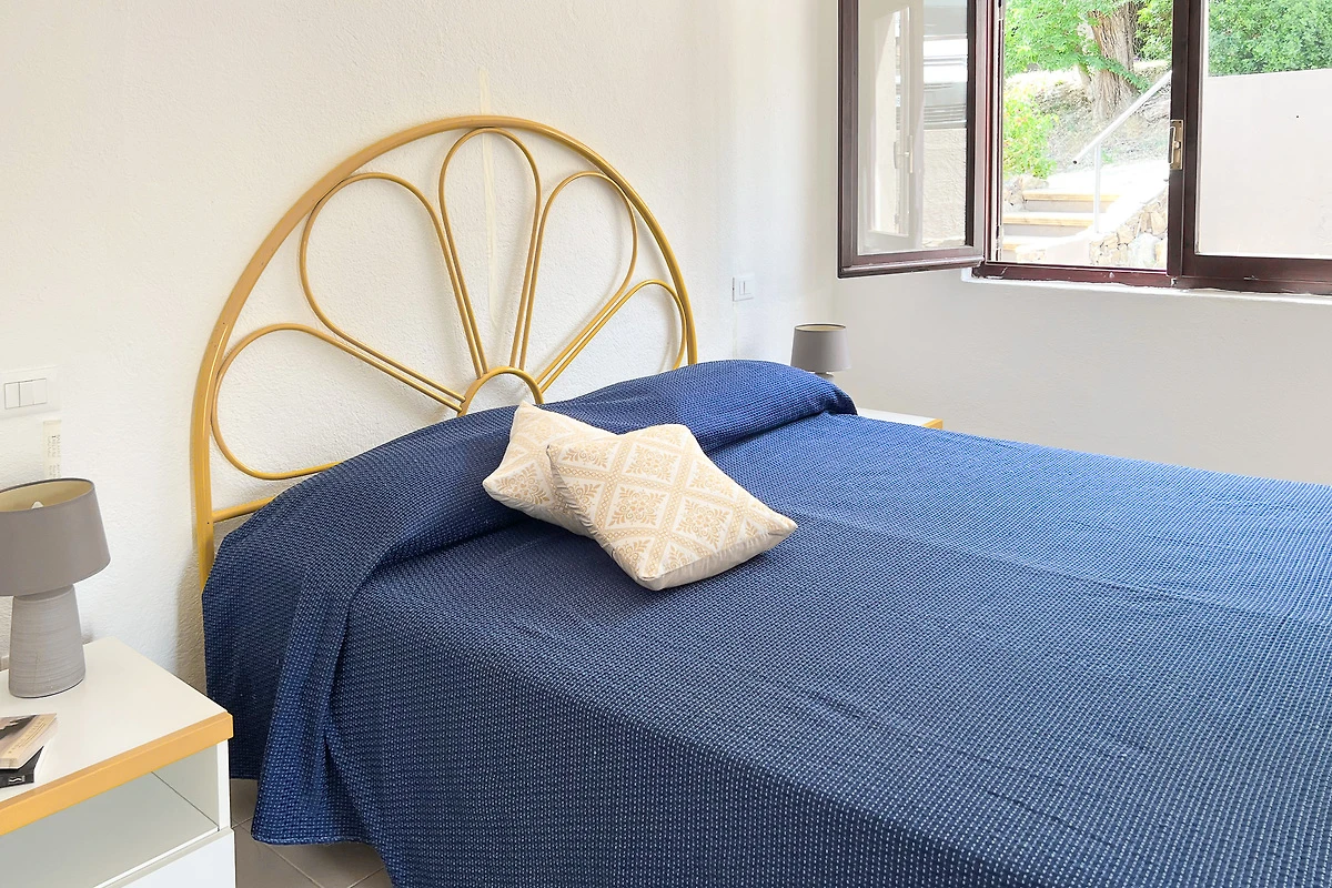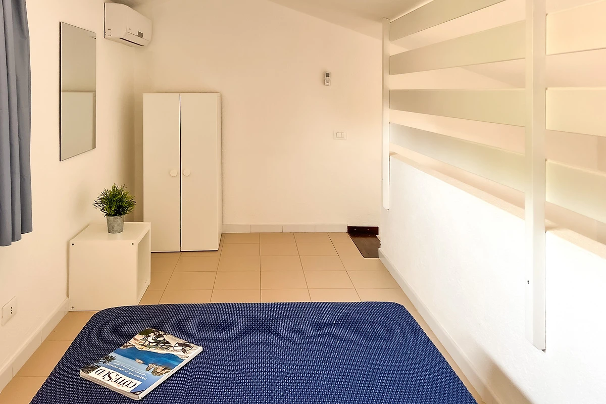 Die Ferienwohnung Casa Parulda verfügt über einen unabhängigen Zugang und besteht im Erdgeschoss aus einem kleinen und einladenden Wohn-/Essbereich mit Meerblick, einem Sofa, einem Esstisch und einer gut ausgestatteten Kitchenette. Auf der gleichen Etage befindet sich das schöne Hauptschlafzimmer mit Doppelbett und Badezimmer. Das Zwischengeschoss (Mezzanine) mit Blick auf das Wohnzimmer verfügt über ein französisches Doppelbett (120 cm breit) für einen Erwachsenen oder zwei Kinder.