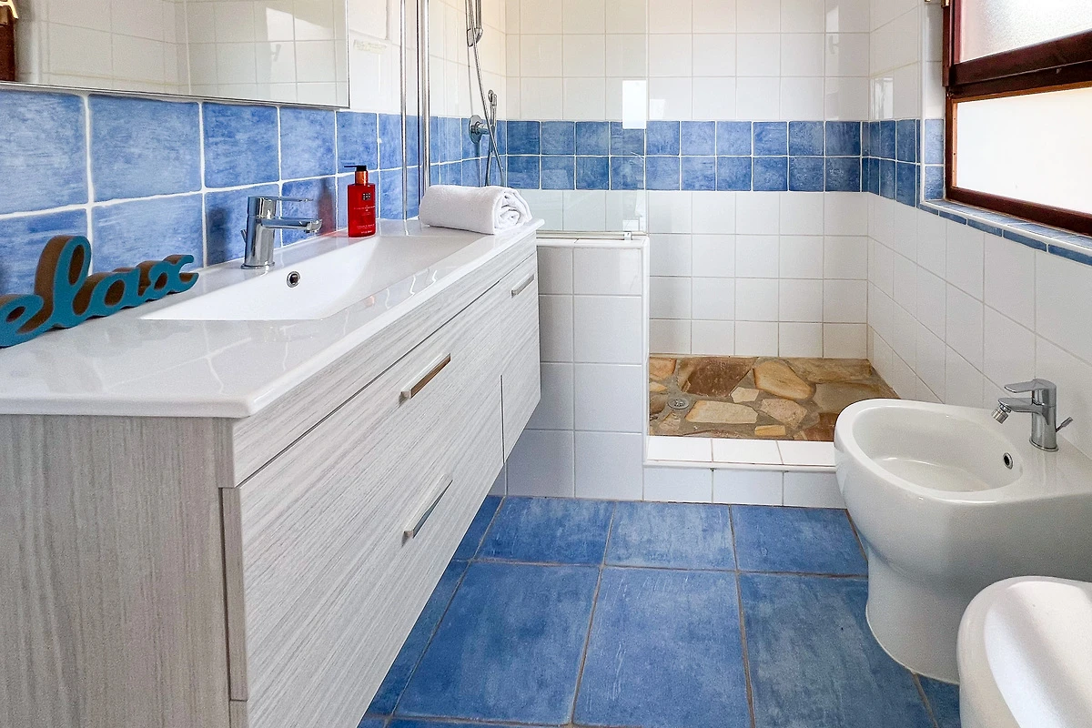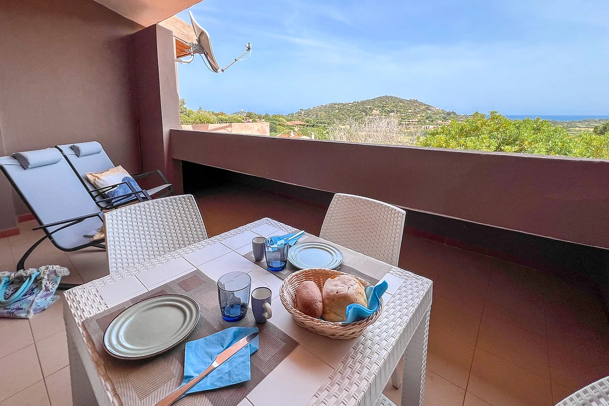 Das Highlight ist sicherlich die gedeckte Panorama-Terrasse, die einen spektakulären Blick auf das Meer und den Chia-Turm bietet! Dieser Außenbereich verfügt über einen Esstisch und Liegestühle. Der perfekte Ort, um den Meerblick beim Frühstück oder beim Aperitif nach einem sonnigen Tag am Strand zu genießen!