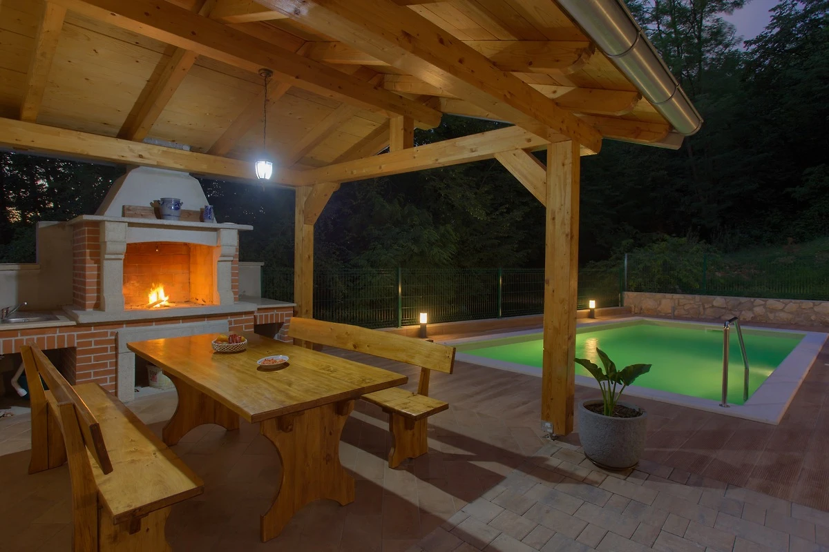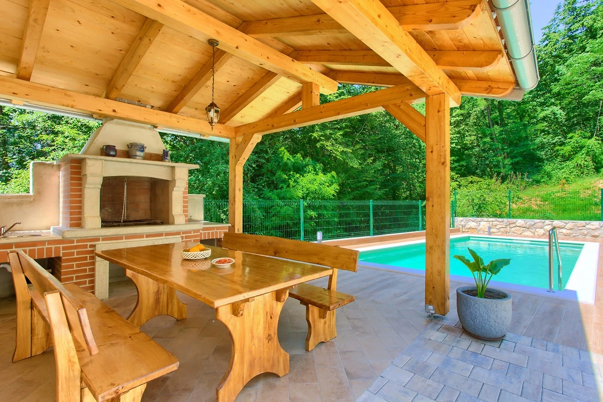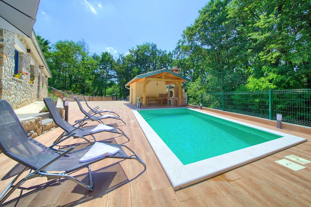 Das Haus liegt in ruhiger Lage in Natur. Das Herzstück des Hauses ist der erfrischende Pool 6m x 4m, der Ihnen jederzeit zur Verfügung steht und nur für Ihren Gebrauch ist. Die Räume sind liebevoll eingerichtet, die Küche ist voll ausgestattet (auch mit Backofen und Geschirrspüler). Die Fenster in den Räumen kann man verdunkeln. Hübsches Ferienhaus liegt im kleinen Ort in der Nähe von zwei berühmten Reisezielen - der Touristenstadt Rabac und der mittelalterlichen Stadt Labin. Ideal für alle, die einen Urlaub in einer ruhigen Gegend und doch in der Nähe von Dienstleistungen verbringen möchten. Das Anwesen ist von Eichenhainen umgeben, während Sie auf der überdachten Terrasse Ihre Lieblingsgerichte auf dem Grill zubereiten. Zwei Terrassen (davon eine überdachte mit Grill) hingegen lädt zum Entspannen und Genießen Ihrer Lieblingslektüre ein. Da das Grundstück eingezäunt ist, wird Ihnen angenehme Privatsphäre gewährleistet. Es steht Ihnen die Waschmaschine zur Verfügung.