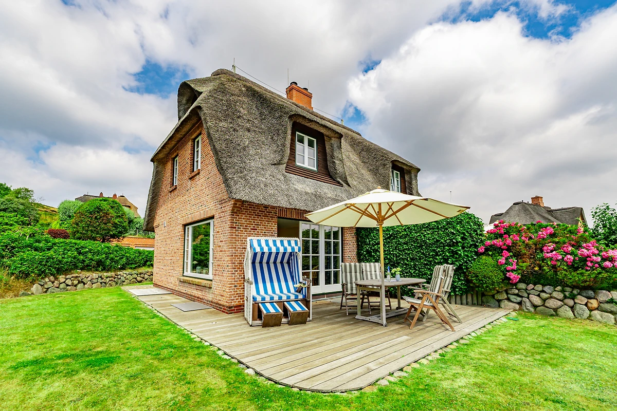 Im eigenen Garten genießen Sie sonnige Stunden oder entspannen auf der Terrasse mit Blick auf das Reetdach und die umliegende Natur. Ihr Auto parken Sie bequem direkt am Haus. Waschmaschine und Trockner stehen Ihnen für längere Aufenthalte zur Verfügung. Haus Düne ist ausschließlich für Nichtraucher geeignet, sodass Sie und Ihre Familie unbeschwerte Urlaubstage verbringen können. Entdecken Sie die Schönheit der Insel und genießen Sie die besondere Atmosphäre dieses charmanten Hauses – Ihr Wohlfühlurlaub beginnt hier! Der helle Garten, der direkt an die typische Sylter Heidelandschaft grenzt, verleiht dem Haus eine einmalige Schönheit.