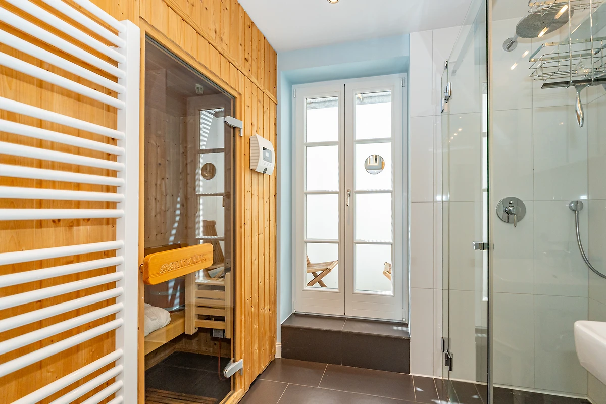 Nach einem Tag an der frischen Nordseeluft verspricht die hauseigene Sauna pure Erholung. Die komfortablen Schlafzimmer und die gepflegten Bäder mit Fußbodenheizung bieten alles, was Sie für einen erholsamen Aufenthalt benötigen. Für Unterhaltung sorgen TV und kostenfreies WLAN.