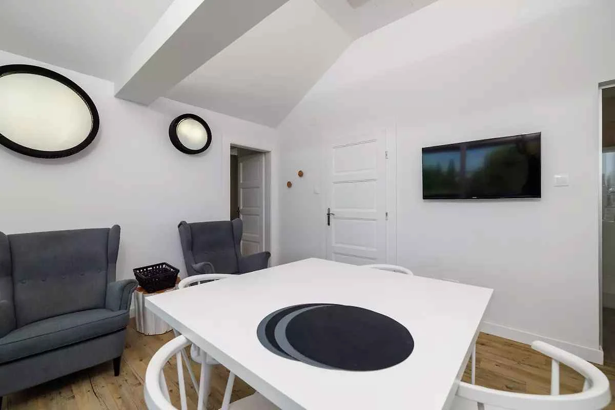Crikvenica. Die Ferienwohnung befindet sich auf einem Gartengrundstück mit Sträuchern und Bäumen. Der Vermieter wohnt im Haus. Die Zufahrt erfolgt über eine Nebenstrasse (asphaltiert). Parkplatz auf der Strasse vor dem Haus. In der Umgebung des Hauses stehen einige öffentliche Parkplätze zur Verfügung. Einige sind kostenfrei und einige gebührenpflichtig.