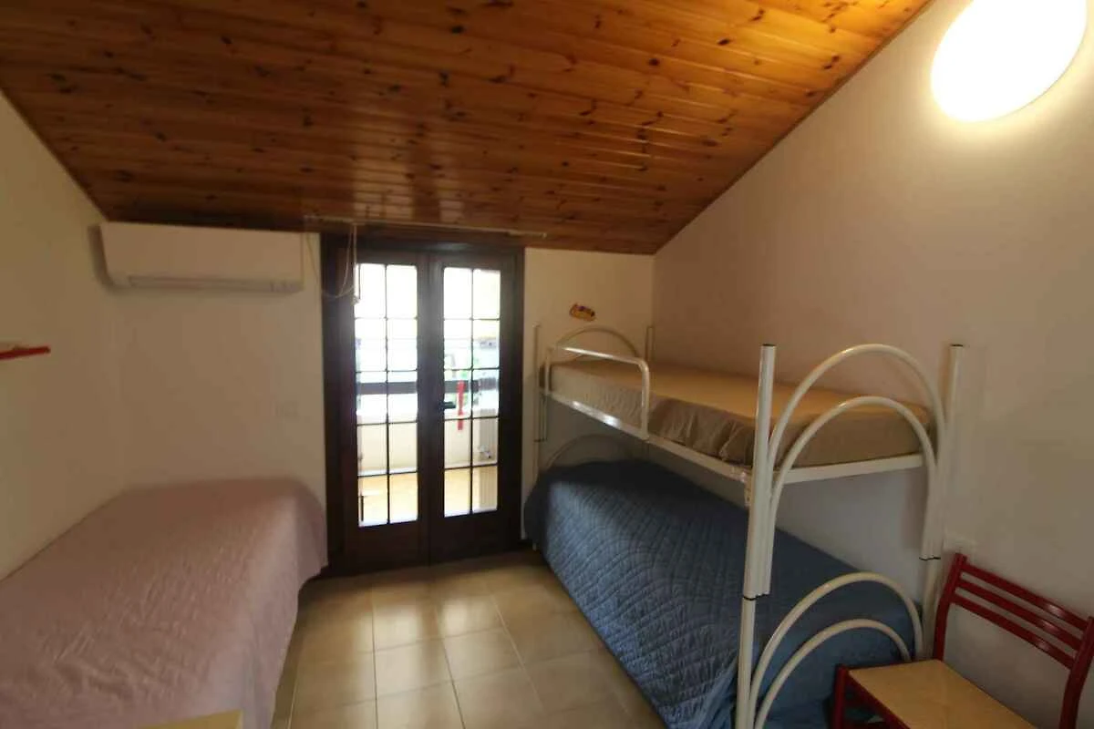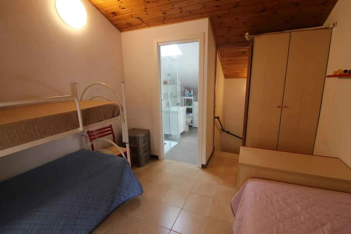 2. Etage: Schlafzimmer mit 1 Einzelbett, 1 Etagenbett und Zugang zum Balkon. Separates WC mit 1 Waschbecken und WC.