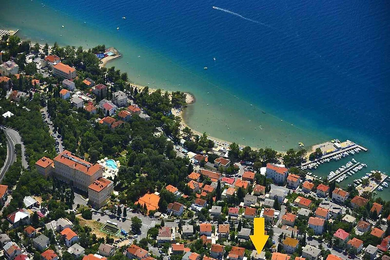 Einkauf 150 m, Restaurant 70 m, Ortszentrum 800 m. Crikvenicca: Arzt, Bank jeweils 1000 m. Apotheke 500 m und Diskothek 800 m. Flughafen in Rijekar 19 km. Markt 150 m in Crikvencia, Bar 100 m in Crikvencia, Museum 1100 m in Crikvencia, Tankstelle 1000 m in Crikvencia. Im Sommer: Adriatischen Meer 220 m in Crikvenicca (Strand 220 m in Crikvenicca mit Sand). Crikvenicca: Tauchen 200 m und Tennis 650 m. Fahrradverleih 100m in Crikvencia.