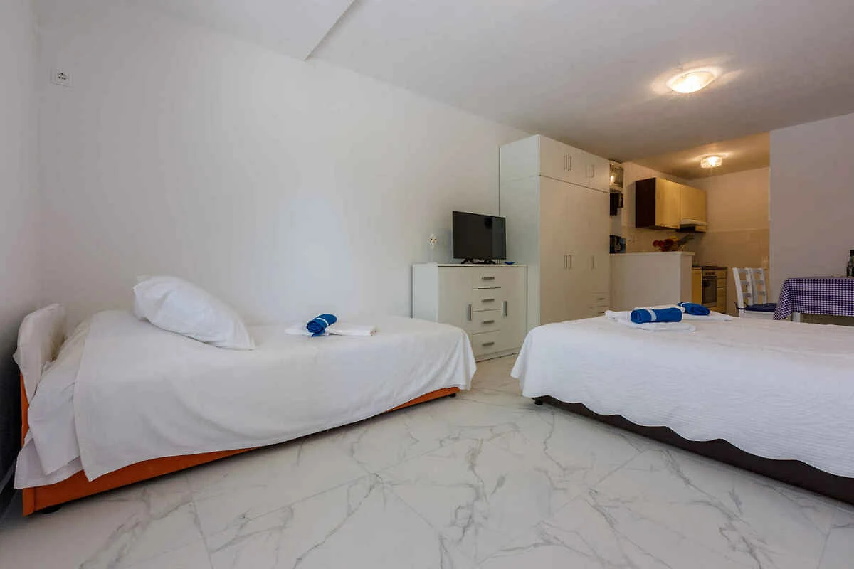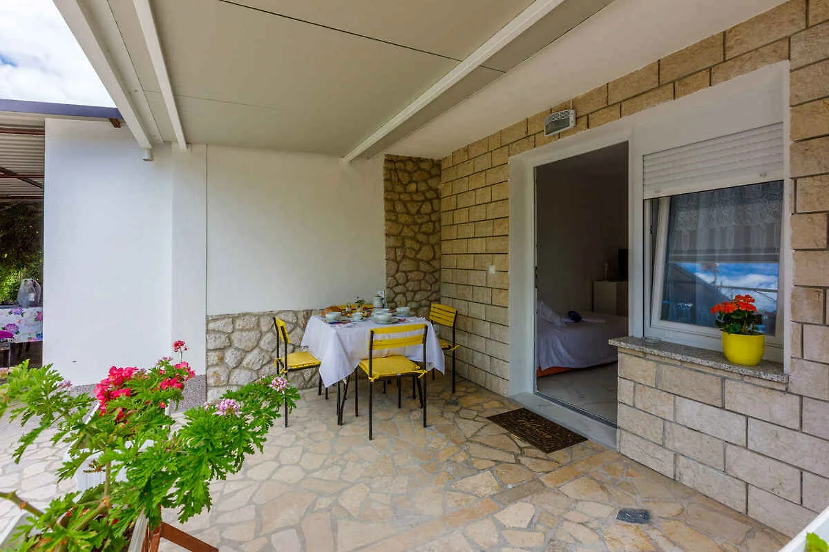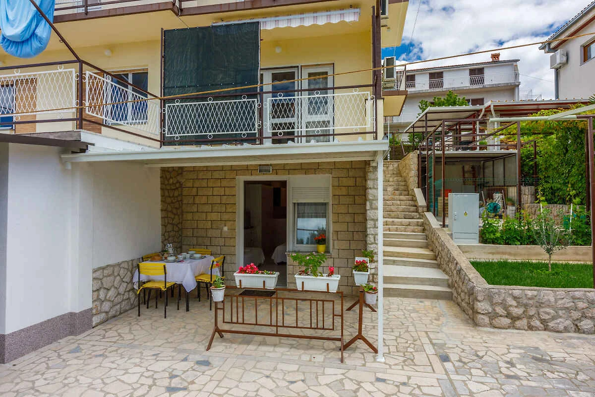 Crikvenica. Das Studio befindet sich auf einem geschlossenen Gartengrundstück mit Wiese, Blumen und Bäumen, von einem Zaun begrenzt. Die Zufahrt erfolgt über eine Nebenstrasse (asphaltiert). Parkplatz (für 1 Pkw) auf dem Grundstück.