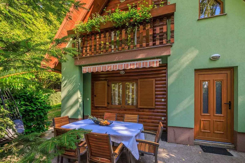 Breze. Das Ferienhaus befindet sich auf einem geschlossenen Gartengrundstück. Parkplatz (für 1 Pkw) auf dem Grundstück.