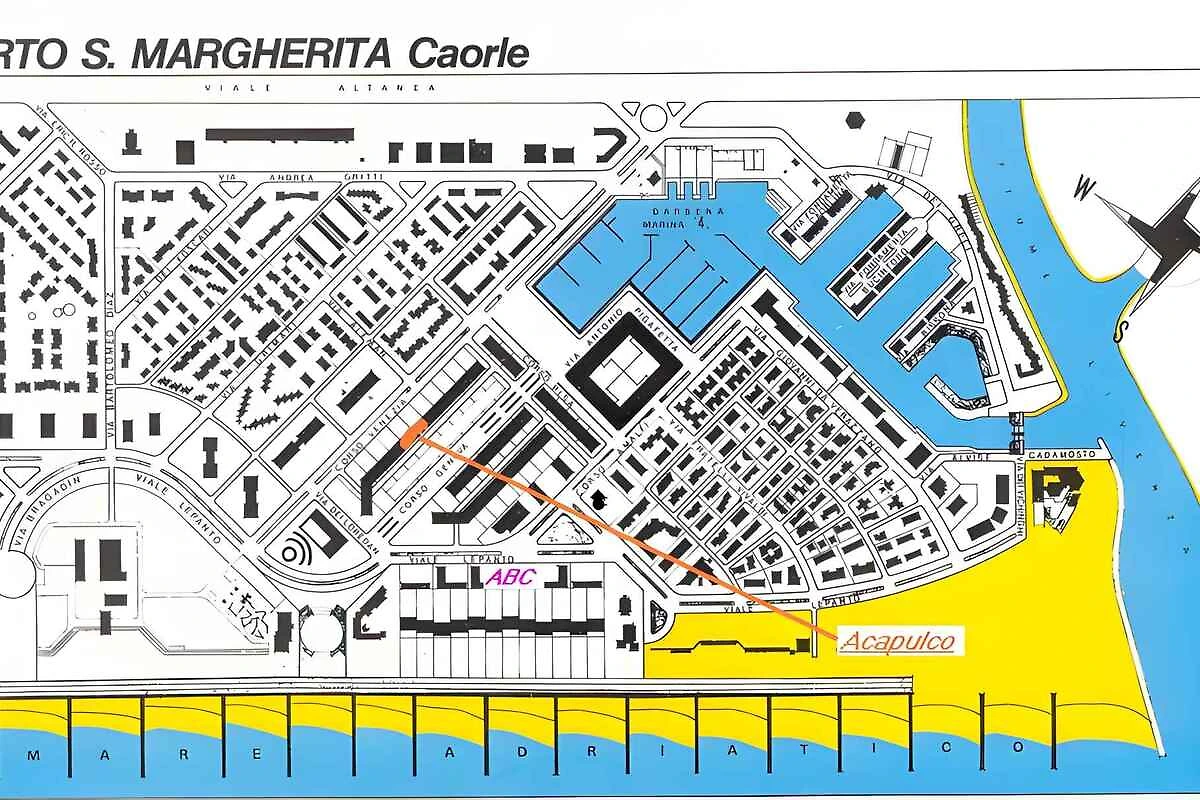 Einkauf 150 m, Restaurant 150 m, Ortszentrum 100 m. Thermalbad in Bibione 65 km. Sauna, Diskothek jeweils 5 km in Caorle. darsena: Arzt, Bank jeweils 100 m. Apotheke 200 m. Kino in Fiume Veneto 75 km. Hallenbad in piscina comunale 500 m. Bahnhof in Santo Stino di Livenza 15 km. Flughafen in Venezia 95 km.