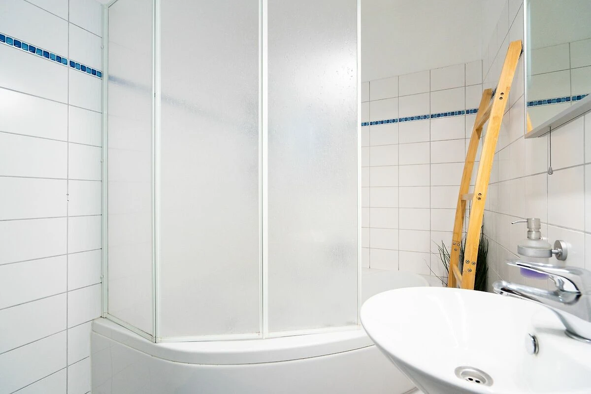 Das Tageslichtbad der Ferienwohnung ist mit einer Dusche ausgestattet und bietet als besonderes Highlight eine Whirlwanne, die nach einem aktiven Urlaubstag zum Entspannen einlädt. Ein Haartrockner ist vorhanden. Für längere Aufenthalte steht Ihnen eine Waschmaschine zur alleinigen Nutzung zur Verfügung. Sichtschutz an allen Fenstern sorgt in der gesamten Ferienunterkunft für Privatsphäre und ein angenehmes Wohngefühl.