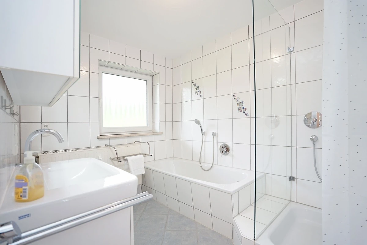 Bad mit Badewanne und Dusche, grosses Waschbecken