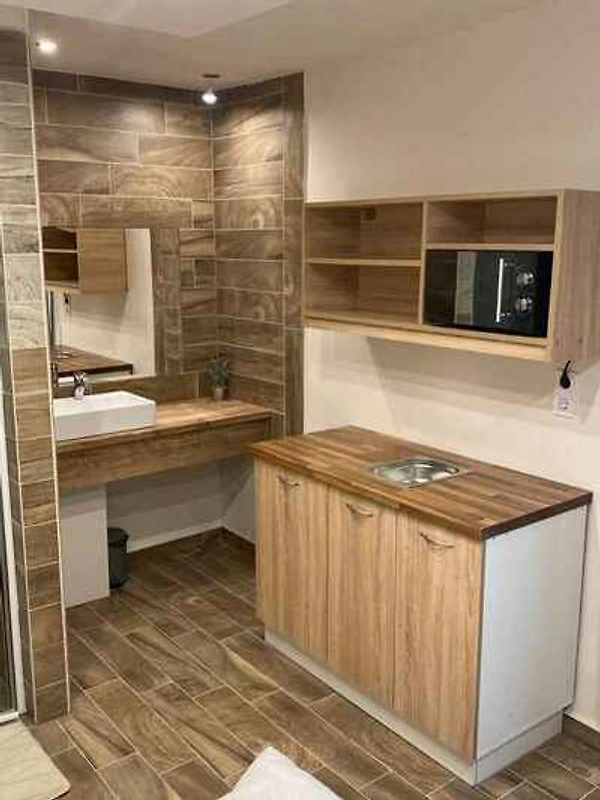 Das Studio befindet sich in einem Apartementhaus und ist modern eingerichtet. Auch wegen der Lage am Wasser ist das Domizil beliebt. Zur gemeinsamen Nutzung stehen zur Verfügung: Sonnenliege, Grillmöglichkeit, Gartenmöbel und Hollywood-Schaukel.