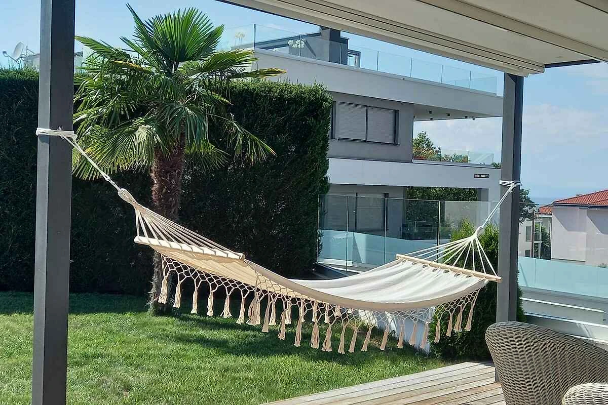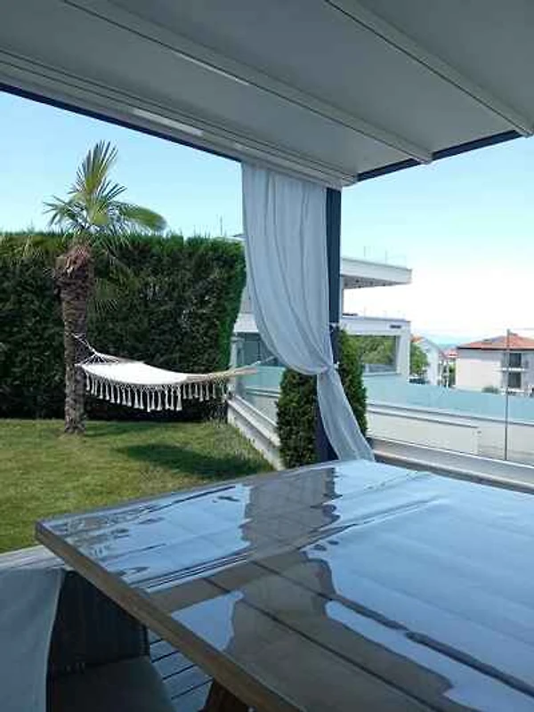 Die Ferienwohnung befindet sich in einem 2020 erbauten Apartementhaus und ist modern eingerichtet. Das Grundstück liegt in belebter Umgebung, in einem Wohngebiet. Auch wegen des Ausblicks vom Grundstück auf das Meer ist das Domizil beliebt. Bei diesem Ferienobjekt handelt es sich um eine familienfreundliche Unterkunft. Zur alleinigen Nutzung stehen zur Verfügung: Liegewiese, Sonnenschirm, Sonnenliege, Grillmöglichkeit, Terrasse, Pavillon, Gartenmöbel und Hof.