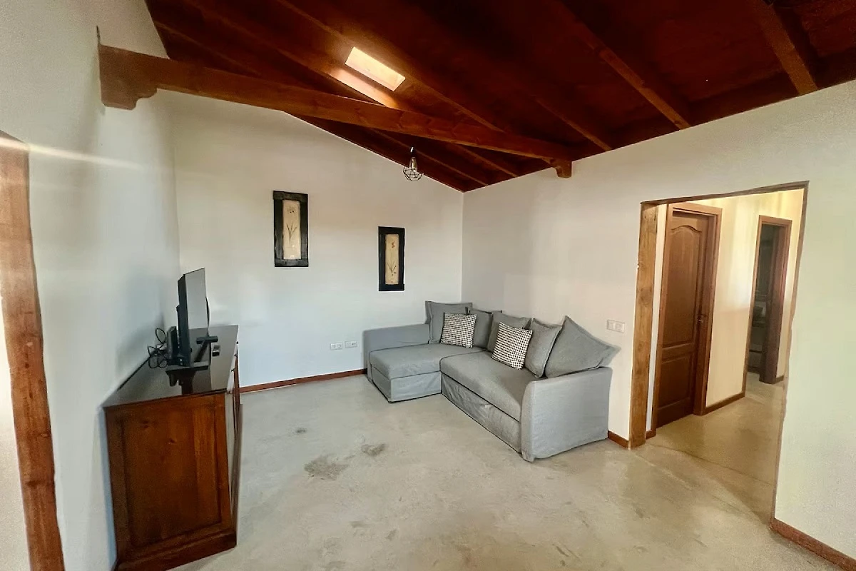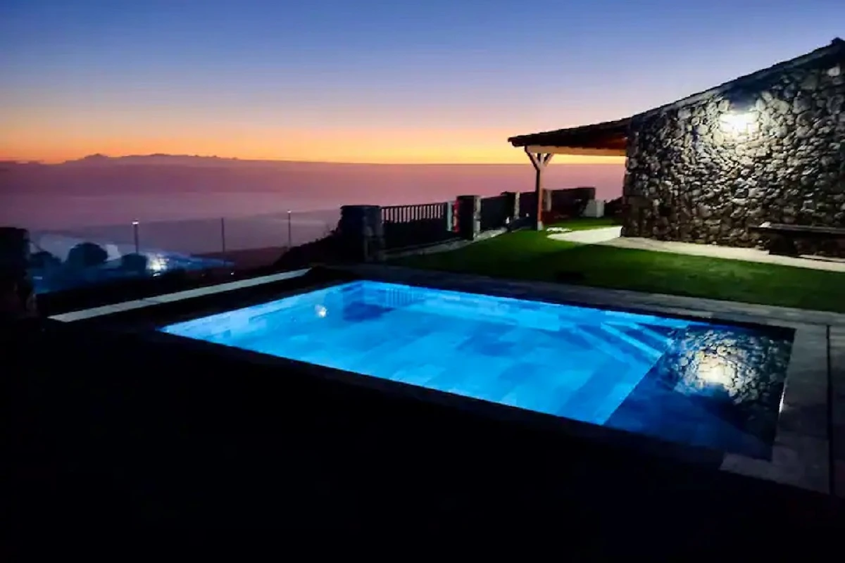 Im Haus befinden sich neben dem großzügigen Wohnbereich noch zwei Schlafzimmer mit Doppelbetten (150 x 200 und 160 x 200), sowie zwei Badezimmer mit Dusche; Waschbecken und WC. Das Wohnzimmer verfügt über ein Schlafsofa, worauf ein Kind oder Jugendlicher Platz zum Schlafen finden würde. Im Außenbereich finden Sie eine großzügige Außenterrasse mit Grill, Gartenanlage und einer Außendusche für den Pool. Lassen Sie sich von der Umgebung in den Bergen und der phantastischen Aussicht auf La Gomera, El Hierro und La Palma begeistern und genießen Ihren Urlaub in entspannter Atmosphäre. Genießen Sie unvergessliche Sonnenuntergänge mit einem atemberaubendem Panorama!