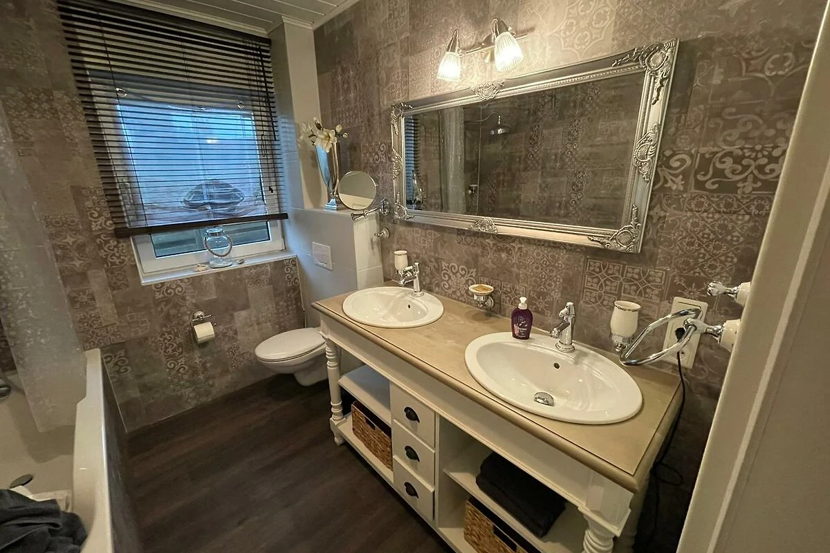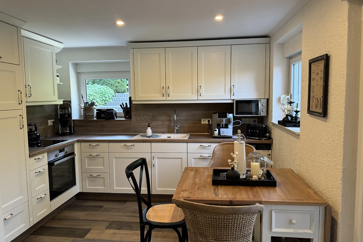 Willkommen im Ferien Cottage Jantje nahe des malerischen Hafenortes Ditzum - ein Landhaus für Ruhesuchende! Das Haus bietet auf 120 m² viel Platz für bis zu 5 Gäste und überzeugt mit zwei Schlafzimmern und zwei Badezimmern, die Komfort und Privatsphäre ermöglichen. Die einladende Wohnatmosphäre wird durch einen Kamin unterstrichen, der an kühleren Abenden für behagliche Stunden sorgt. In der sehr gut ausgestatteten Küche finden Sie neben einer Spülmaschine, einer Mikrowelle, einem Wasserkocher, Soda-Streamer, einer KitchenAid oder einem Kaffee-Vollautomaten alles, was Sie für die Zubereitung gemeinsamer Mahlzeiten benötigen. Auch eine Waschmaschine steht zur Verfügung – ideal für längere Aufenthalte.