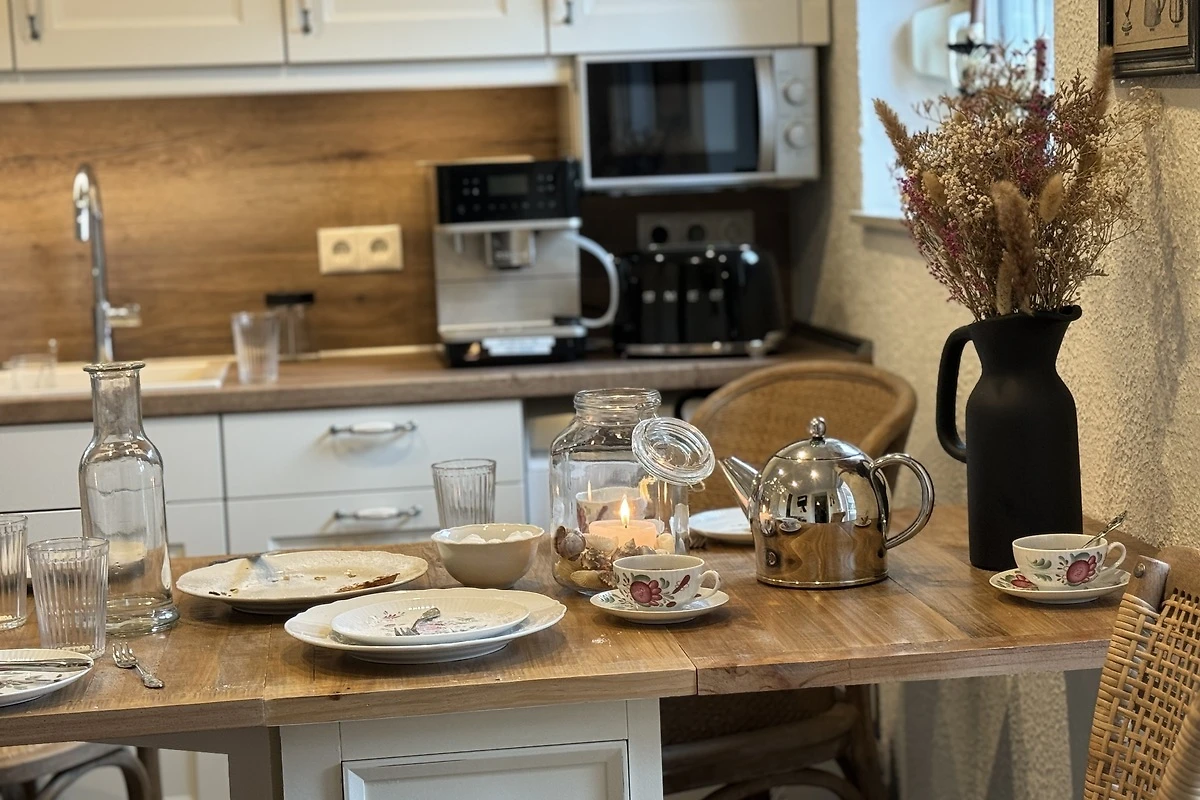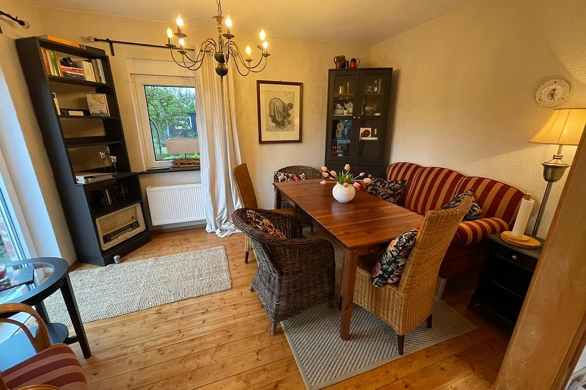 Unser Ferien-Cottage Jantje besticht durch seine traumhafte Lage direkt am Wasser, umgeben von einem blütenreichen Garten. Es erwarten Sie im Außenbereich zwei große Terrassen, ein hauseigner Steg mit Ruderboot, Gartenliegen, Weber-Grill, einer geräumigen Dachterrasse und zwei E-Bikes für eine "Rückenwind-Garantie". Unser kleines Cottage verfügt über zwei Schlafzimmer mit Boxspringbetten, zwei Badezimmer, einer gemütlichen Landhaus-Küche, einem Wohn-/Essbereich mit Wasserblick und einem Ruheraum mir Sauna-/Infrarot-Kombikabine. Mit Jura-Kaffee-Vollautomat, Waschmaschine, dänischer Kamin-Ofen, SMART-TV, KichenAid, Geschirrspüler, Weinkühlschrank, Waffeleisen, Soda-Streamer, kostenlosem WLAN (Glasfaser) und vielem mehr sollen Ihnen an nichts fehlen. Die Nutzung der E-Bikes, des Ruder-Boots, der Waschmaschine, der Angellizenz und die Endreinigung sind im Preis enthalten.