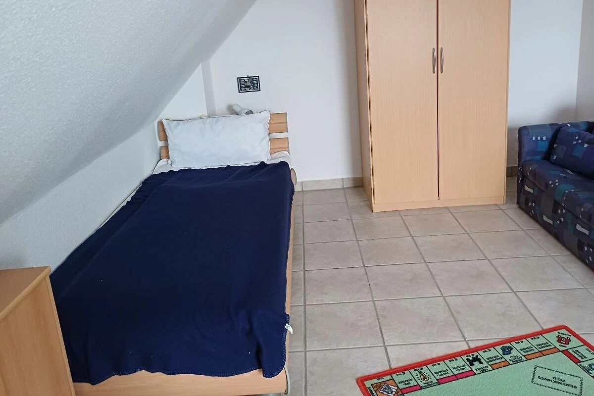 Schlafzimmer 2: zwei Einzelbetten, kleines Sofa, Schrank, Tisch, Stühle