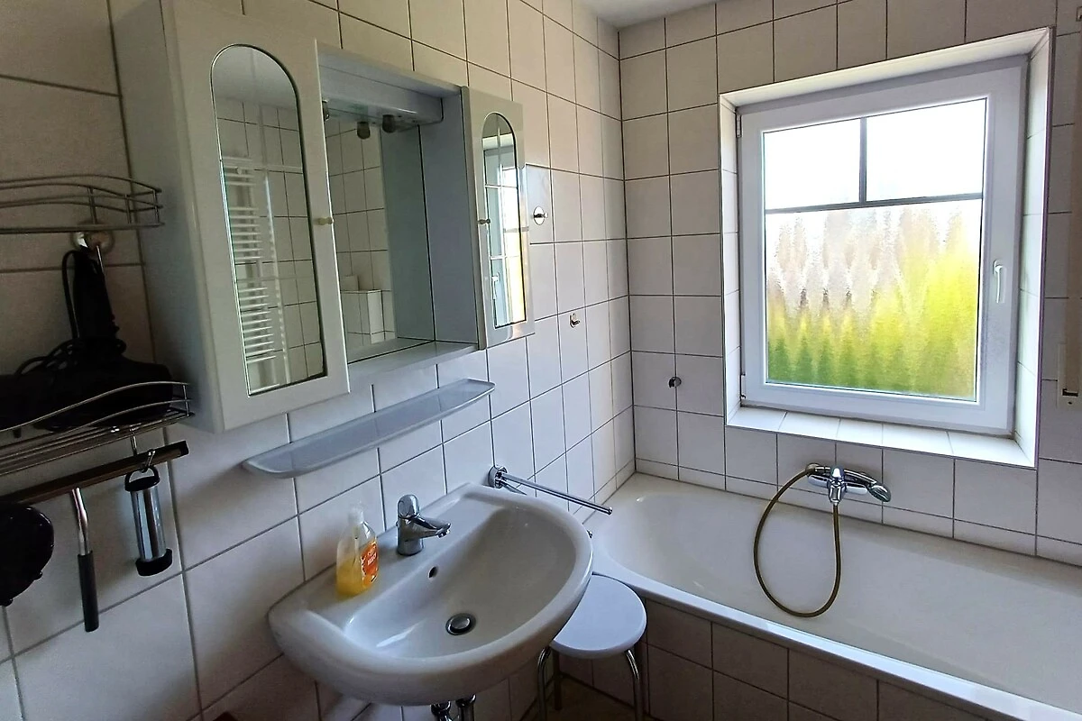 Bad: WC, Wanne, Dusche, Spiegelschrank, Föhn