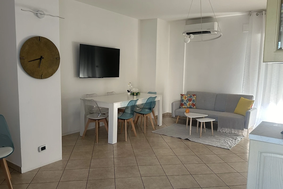 Willkommen in der Ferienwohnung La Mia Casa Al Mare in Roseto degli Abruzzi – Ihr Rückzugsort an der Adriaküste! Auf 134 m² bietet die Wohnung ausreichend Platz für bis zu 12 Gäste und eignet sich sowohl für einen entspannten Familienurlaub als auch für längere Aufenthalte. Das Schlafzimmer überzeugt mit einem komfortablen Bett und frischer Bettwäsche, während das Badezimmer mit Dusche, Waschbecken und WC für Ihren täglichen Komfort sorgt. Die moderne Küchenzeile ist komplett ausgestattet – genießen Sie den Komfort von Mikrowelle, Wasserkocher und Kaffeemaschine für Ihren perfekten Start in den Tag. Ein großzügiger Balkon lädt dazu ein, den Tag mit Meerblick ausklingen zu lassen. Dank Klimaanlage behalten Sie auch an warmen Tagen einen kühlen Kopf. Für Unterhaltung sorgt der TV im Wohnbereich, und eine Waschmaschine steht Ihnen ebenfalls zur Verfügung. Ihr Auto parken Sie bequem auf dem eigenen Stellplatz. Die stilvolle Einrichtung, kombiniert mit einer lichtdurchfluteten Atmosphäre, schafft eine angenehme Wohlfühlumgebung. Ob Sie die Sonne am nahen Strand genießen oder die Umgebung erkunden möchten – La Mia Casa Al Mare bietet Ihnen alles, was Sie für einen sorgenfreien Aufenthalt brauchen. Auch eine Langzeitmiete ist möglich – genießen Sie das Leben am Meer so lange Sie möchten!