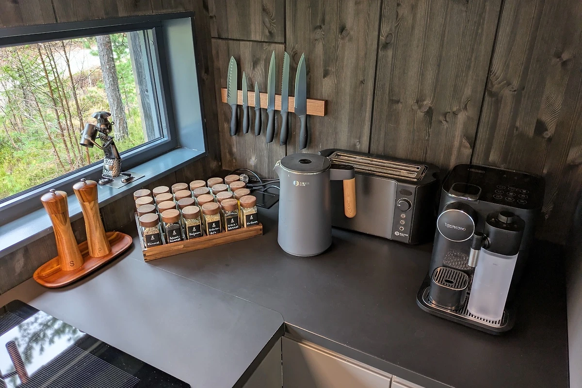 Die liebevoll durchdachte Einrichtung vereint teils handgefertigte Möbel mit besonderen Details und schafft in jedem Raum eine warme, exklusive Atmosphäre. Die hochwertig ausgestattete Küche lässt keine Wünsche offen. Der bewusste Verzicht auf einen Fernseher lädt dazu ein, den Moment bewusst zu genießen und vollkommen abzuschalten.