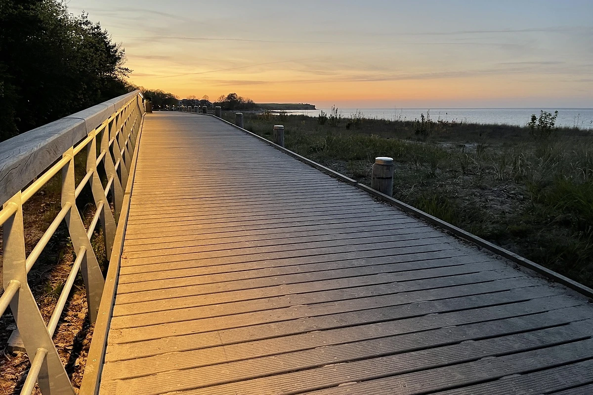 Der Ortskern und die Promenade von Boltenhagen liegen etwa 1,5 km entfernt. Der Weg dorthin lässt sich wunderbar entlang der Küste zurücklegen und wird so selbst zum Teil des Urlaubserlebnisses.