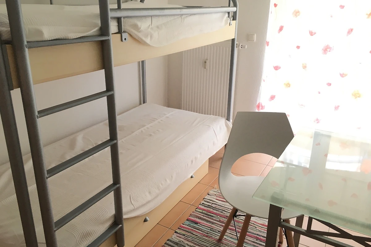 Der Wohnbereich ist freundlich gestaltet und bietet Platz zum Zusammensitzen, Lesen oder Abschalten nach einem Tag am Meer. Die voll ausgestattete Küche ermöglicht eine unkomplizierte Selbstversorgung. Zwei separate Schlafzimmer ( eins mit Etagenbett) sorgen für erholsame Nächte und ausreichend Rückzugsmöglichkeiten.
