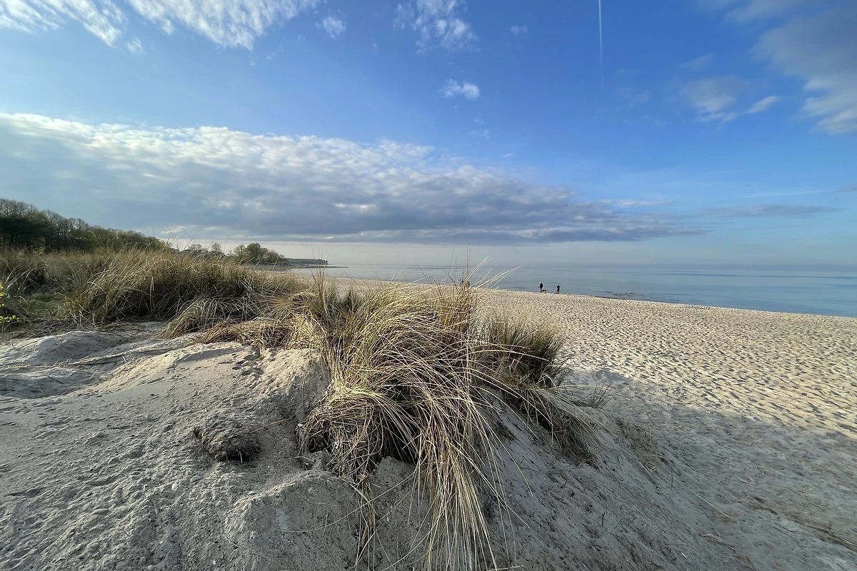 Der feinsandige Strand lädt nicht nur zu Spaziergängen ein, sondern auch zum Baden und Schwimmen im Meer. An warmen Tagen beginnt der Strandtag oft spontan, ganz ohne Planung. Auch außerhalb der Hochsaison hat die Ostsee hier ihren besonderen Reiz – klar, frisch und belebend.