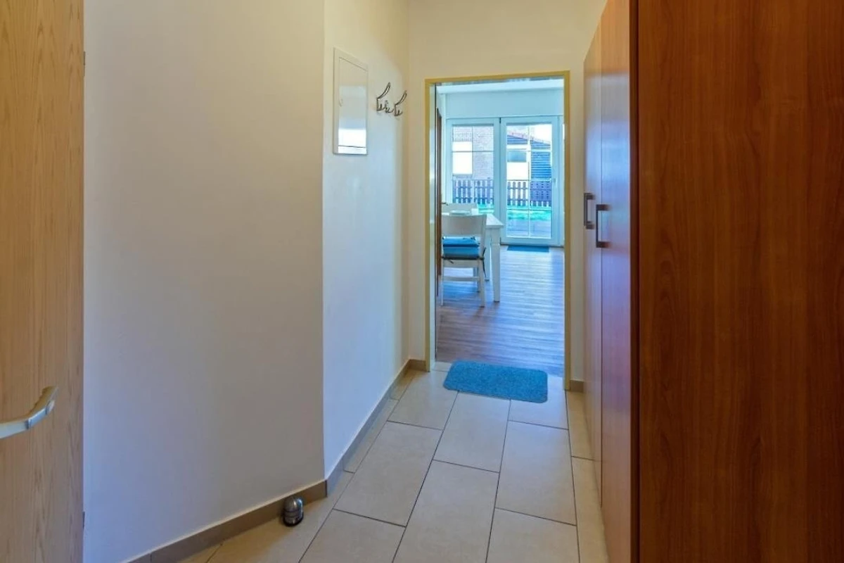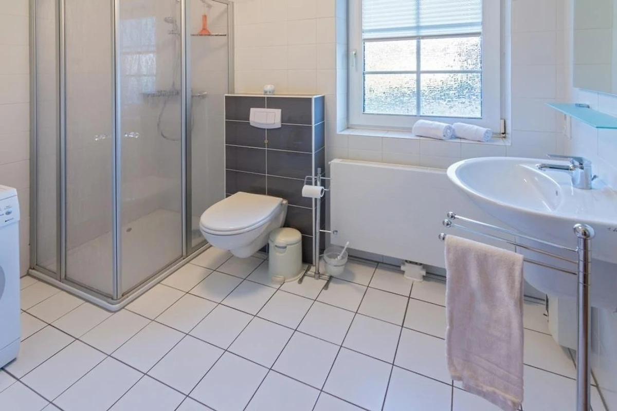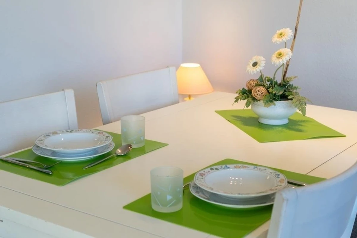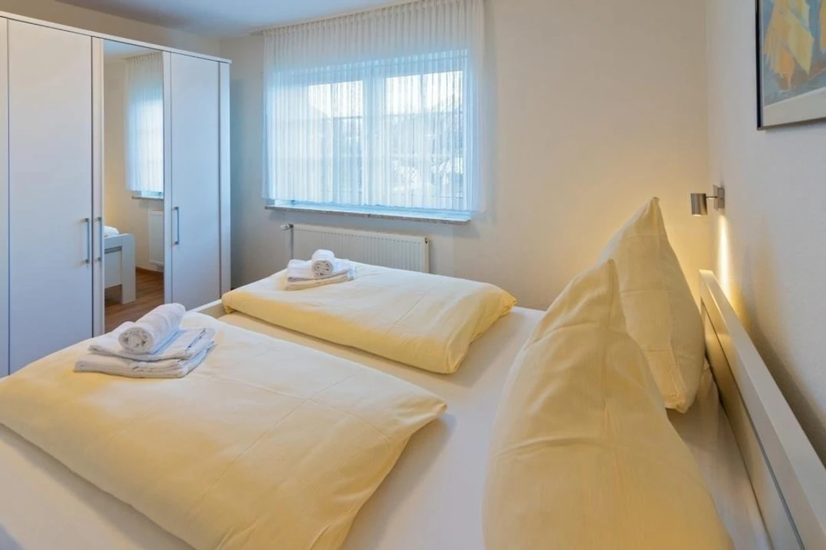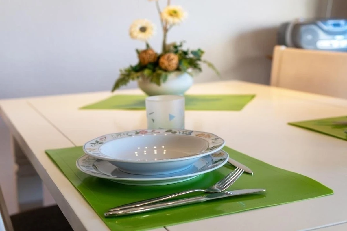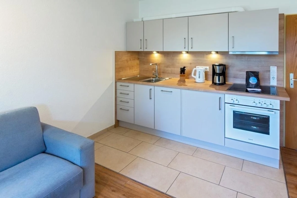 Das ruhig gelegene Schlafzimmer mit komfortablem Doppelbett sorgt für erholsame Nächte, während die moderne Küche mit Cerankochfeld, Backofen, Geschirrspüler, Kühlschrank mit Gefrierfach sowie Kaffeemaschine und Toaster perfekt für Selbstversorger ausgestattet ist. Das gepflegte Duschbad bietet ausreichend Platz und ist funktional gestaltet. Dank der Lage im Erdgeschoss ist die Wohnung besonders komfortabel erreichbar und ideal für Gäste, die barrierearme Zugänge bevorzugen.