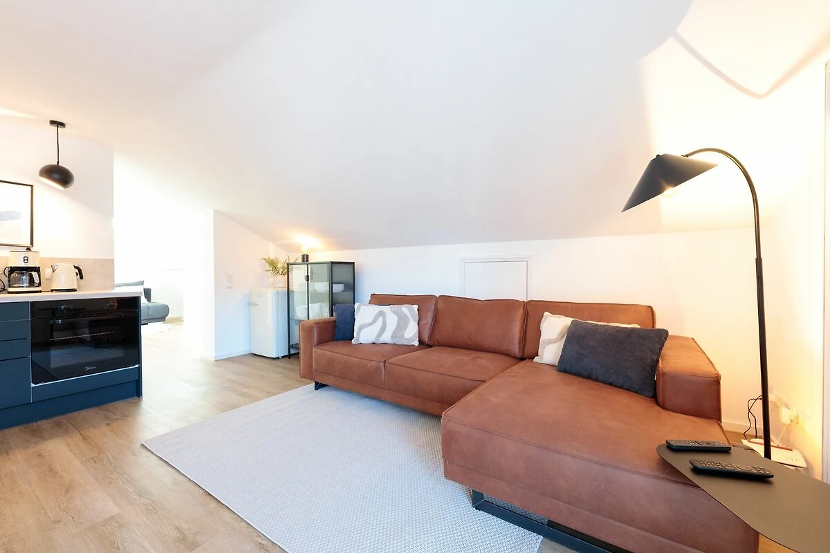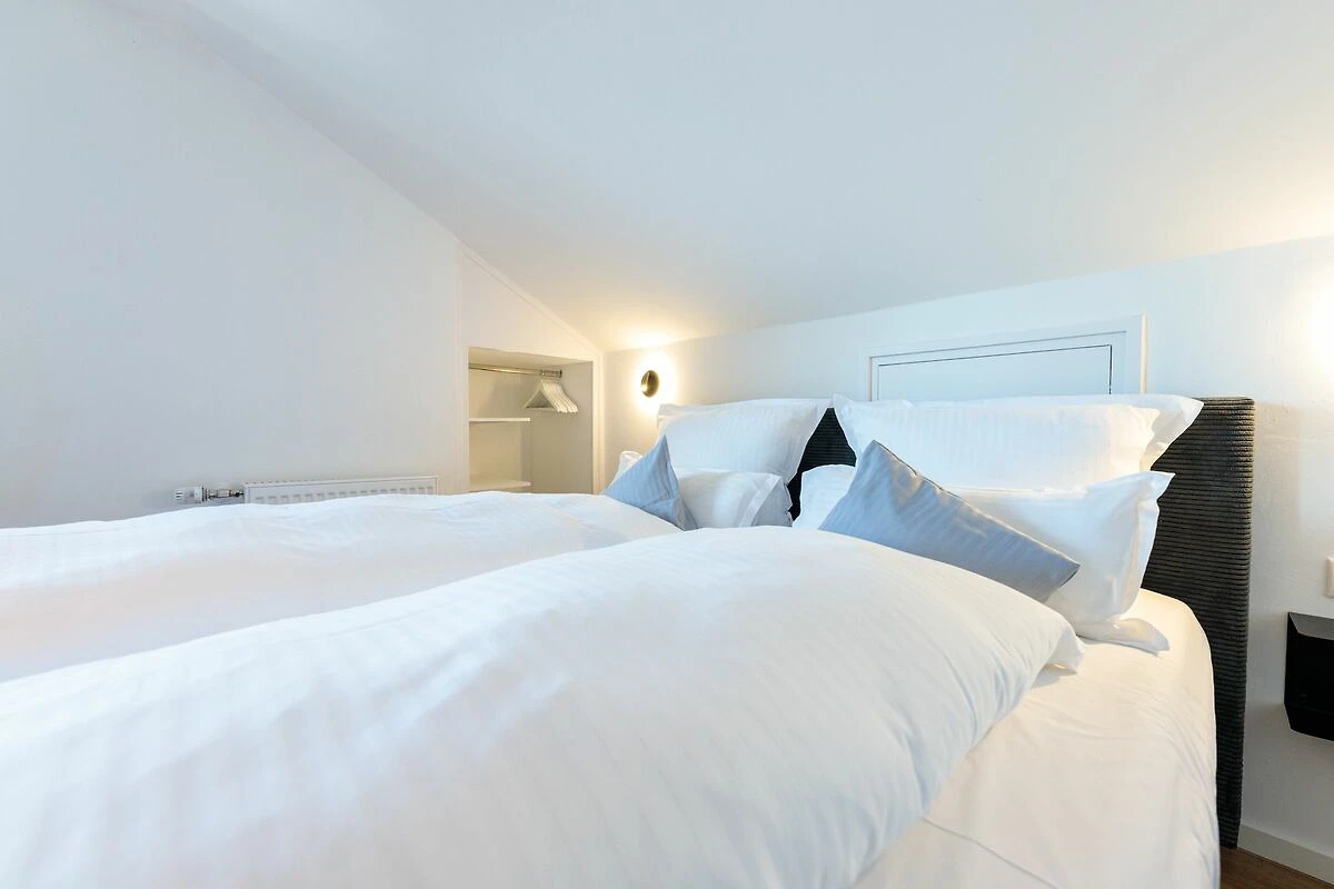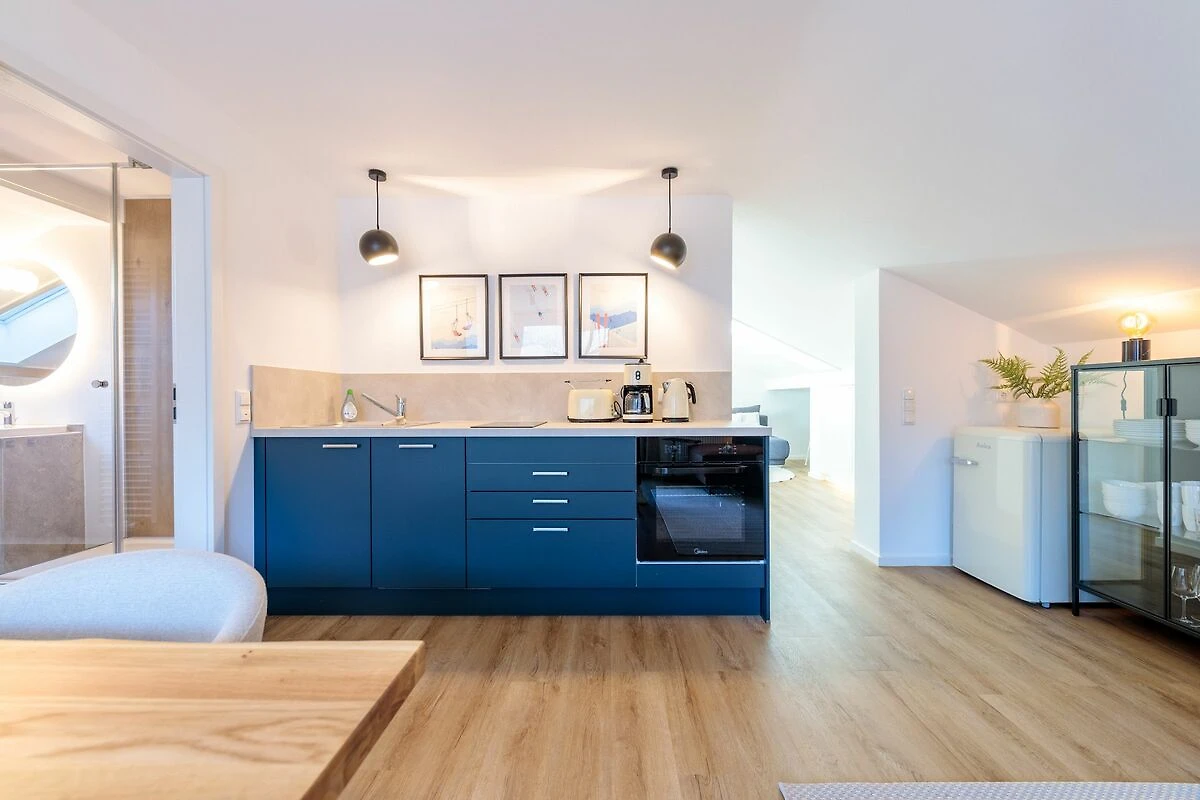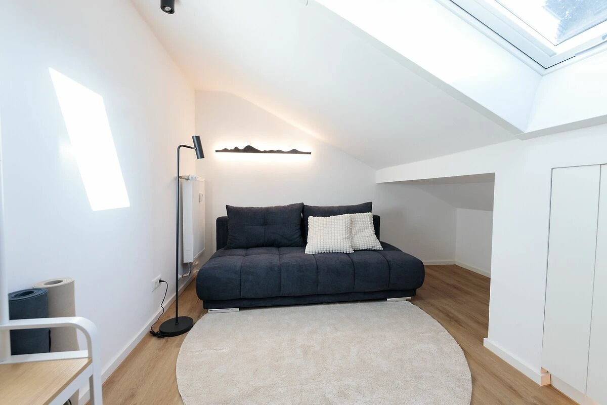 Im Schlafzimmer mit gemütlicher Schräge erwartet Sie ein komfortables Boxspringbett, das erholsamen Schlaf garantiert. Eine weitere, liebevoll gestaltete Ecke der Wohnung bietet ein ausziehbares Sofa, auf dem bis zu zwei weitere Personen bequem Platz finden.