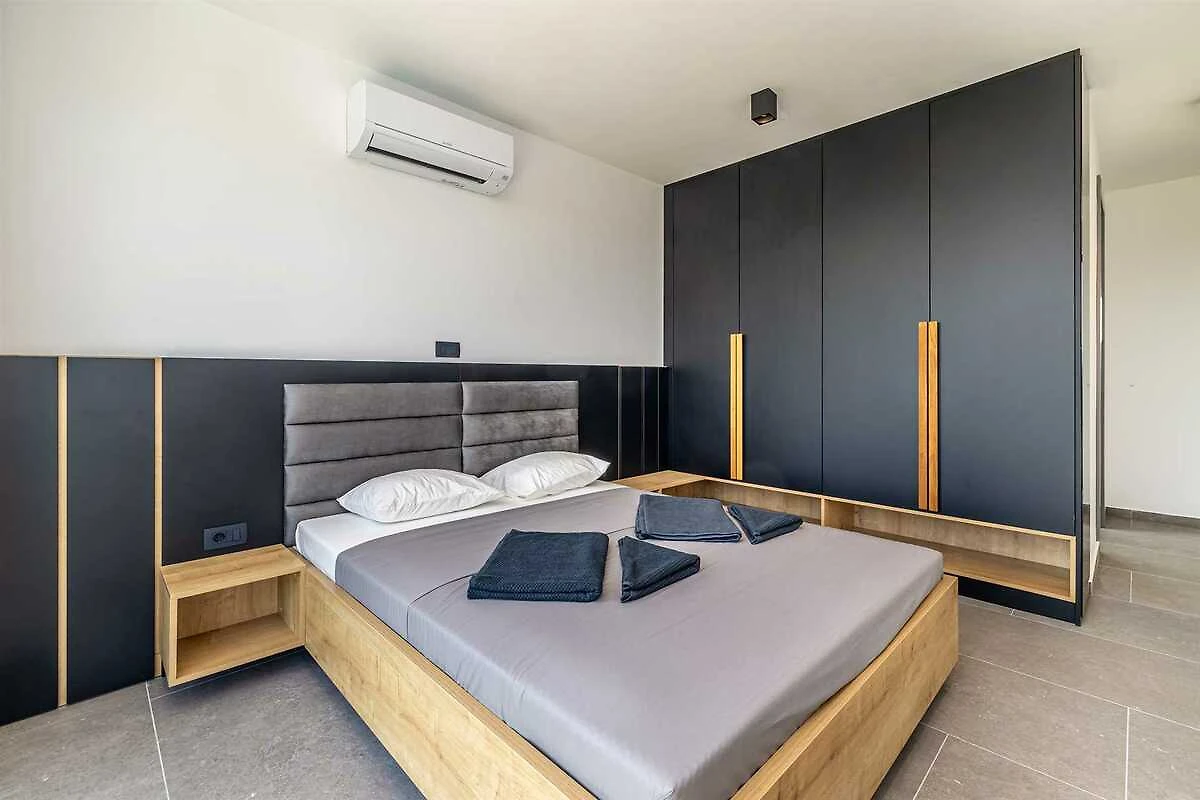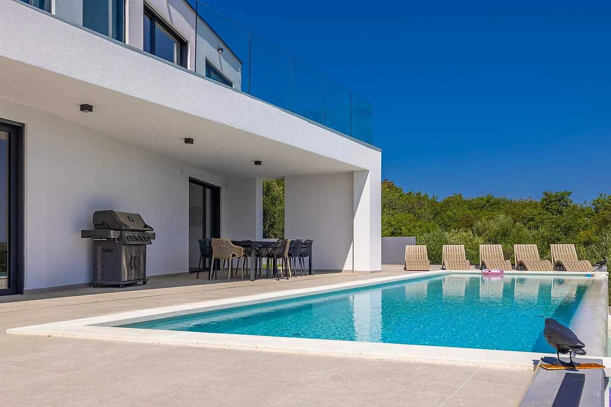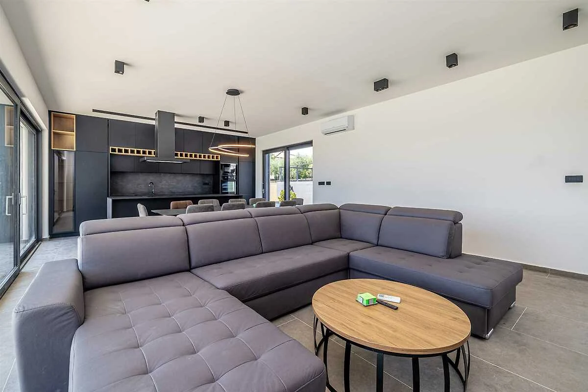 Erleben Sie Luxus pur in dieser geräumigen Villa für 10 Personen. Das Erdgeschoss des Hauses verfügt über ein Badezimmer, ein Wohnzimmer mit Schlafsofa, eine Küche, ein Esszimmer sowie Zugang zur Terrasse und zum Sonnendeck am Pool. Im Obergeschoss befinden sich vier Schlafzimmer mit Doppelbetten und vier Badezimmer. Drei Schlafzimmer haben Zugang zu einer Gemeinschaftsterrasse mit herrlichem Blick auf Olivenhaine, Berge und das Meer in der Ferne. Den Gästen stehen ein beheizter Pool, ein Grill, ein Gartentisch, ein Fitnessraum, eine Garage und eine Ladestation für Elektroautos zur Verfügung. Die Villa ist komplett ausgestattet und wir sind sicher, dass Sie Ihren Aufenthalt genießen werden!