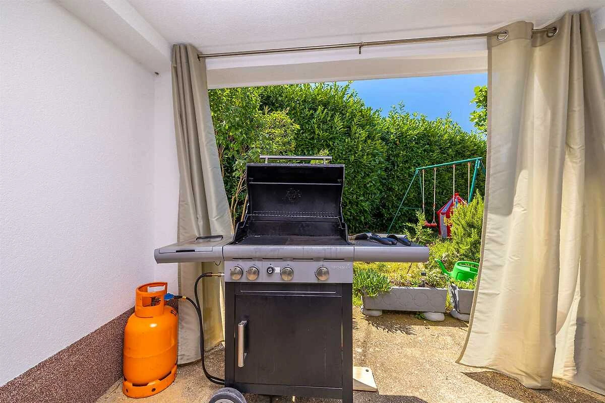 Charmantes Ferienhaus in Kras, Insel Krk für bis zu 5 Personen. Das Haus erstreckt sich über zwei Etagen und verfügt über drei Schlafzimmer und ein Badezimmer, Küche mit Essbereich und Wohnzimmer. Der Aussenbereich verfügt über einen privaten Pool und einen von Natur umgebenen Garten, alles verteilt auf einer Fläche von 1000 m². Es gibt viele Annehmlichkeiten für Kinder sowie einen Grillplatz und eine überdachte Terrasse mit Essmöbeln. Eine ideale Wahl für Familien mit Kindern. Parkplatz vorhanden. Wir wünschen Ihnen ein herzliches Willkommen!