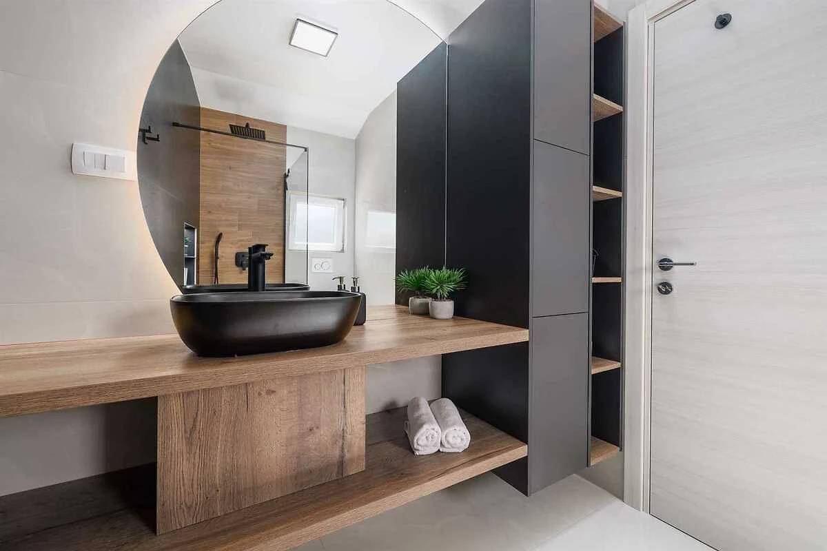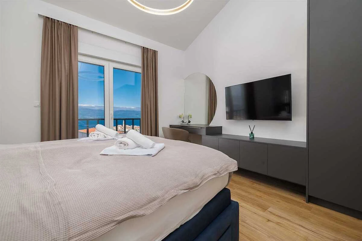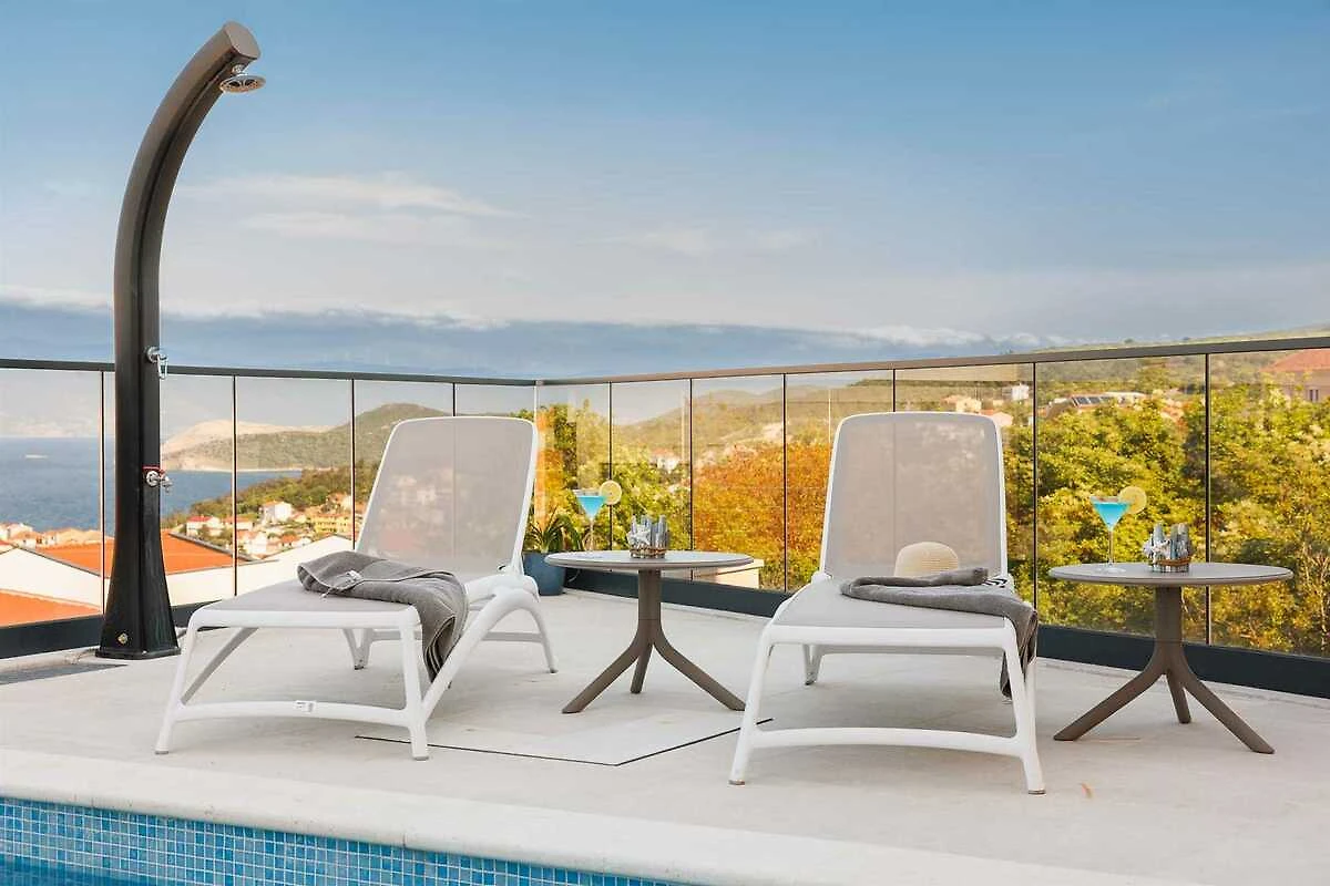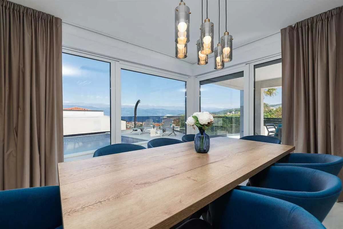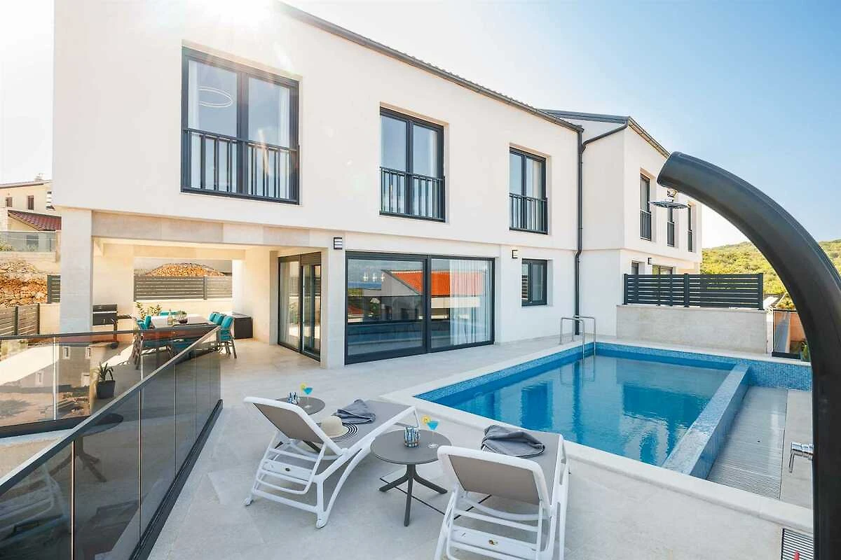 Die wunderschöne, brandneue Villa SUNSET I mit privatem beheiztem Pool bietet einen malerischen Blick auf das Meer und die Stadt Vrbnik. Das Haus erstreckt sich über zwei Etagen und verfügt über drei Doppelzimmer, zwei Badezimmer und ein Gäste-WC. Es bietet Platz für 6 bis 8 Personen. Es gibt eine voll ausgestattete Küche, einen Essbereich und ein Wohnzimmer. Der Aussenbereich mit Pool lädt zum Entspannen oder für gesellige Stunden mit der Familie ein. Das Haus ist komplett ausgestattet und modern eingerichtet. Zwei Parkplätze mit Lademöglichkeit für Elektroautos sind vorhanden. Der Pool ist beheizt und vom 01.05. bis 31.10. geöffnet. Willkommen in unserer Villa SUNSET I!