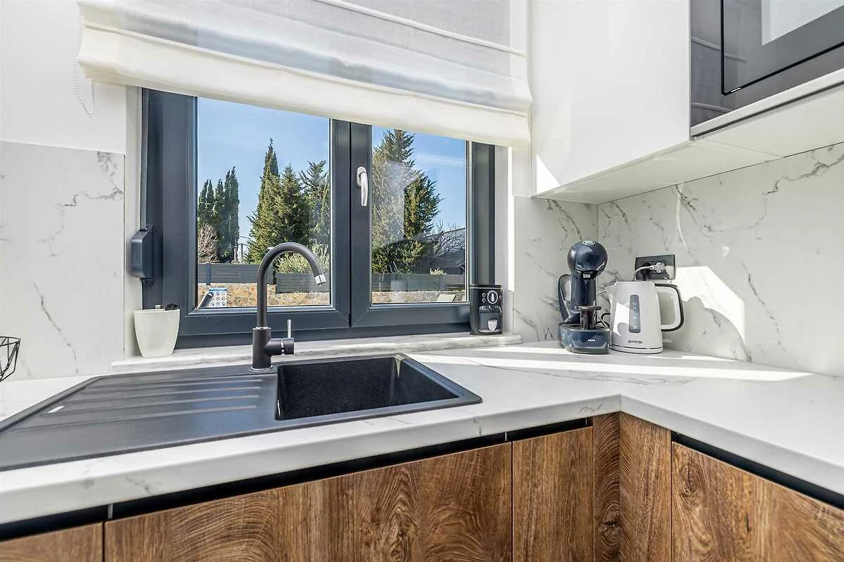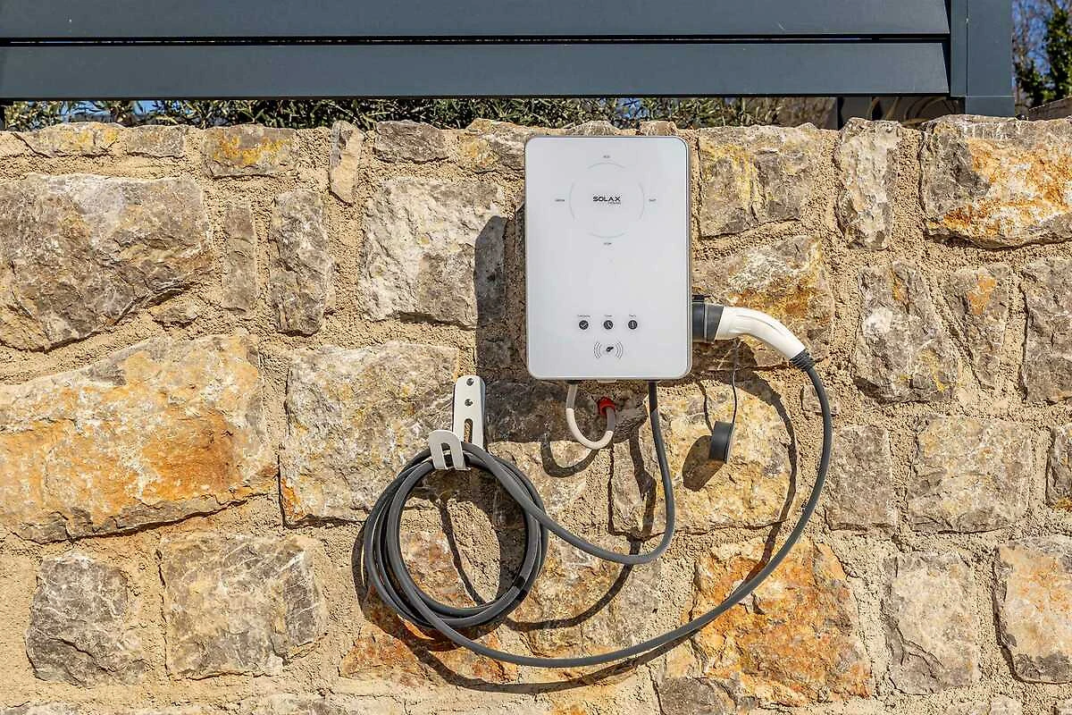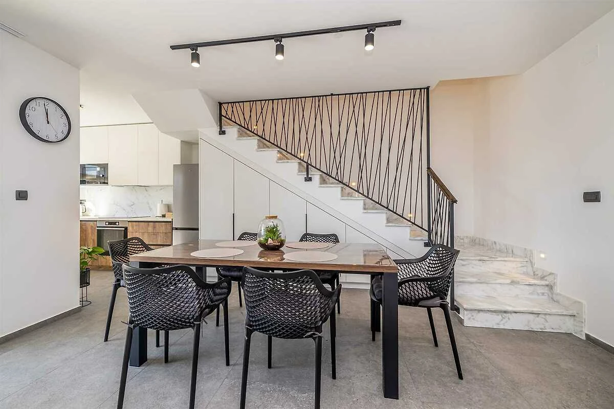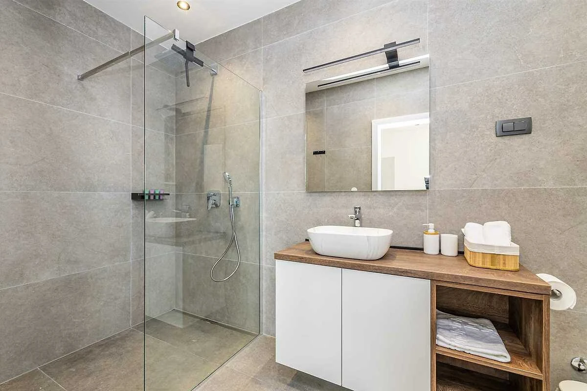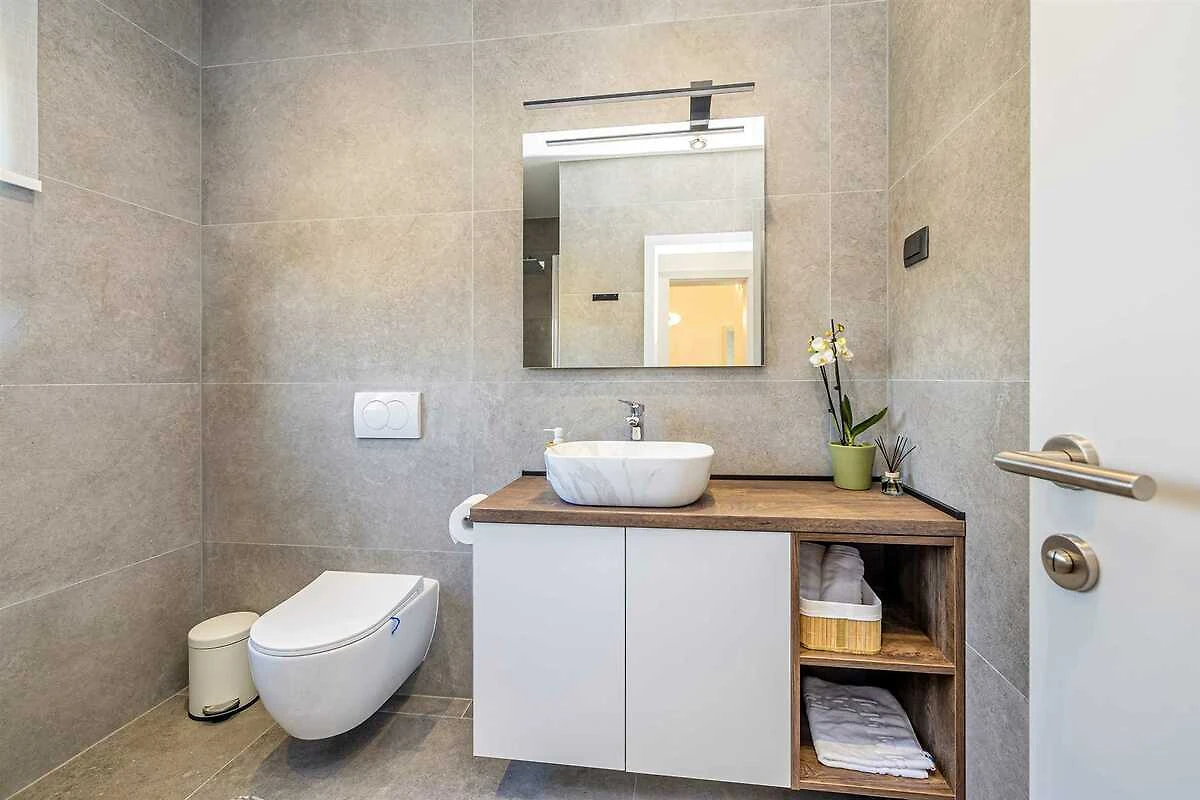 Dieses Ferienhaus bietet Platz für bis zu 6 Personen und vereint moderne Ästhetik mit wohnlichem Komfort. Im Erdgeschoss befinden sich ein Wohnzimmer und eine Küche mit Zugang zum Pool, ein Schlafzimmer mit Bad und eine separate Gästetoilette. Im ersten Stock befinden sich zwei Schlafzimmer, jeweils mit eigenem Bad und Zugang zur Terrasse. Den Gästen stehen ein privater beheizter Pool, ein Sitzbereich im Freien, ein Grill, eine Ladestation für Elektrofahrzeuge sowie Poolhandtücher und Bademäntel zur Verfügung. Es handelt sich um ein Doppelhaus und jedes Haus verfügt über zwei eigene Parkplätze.