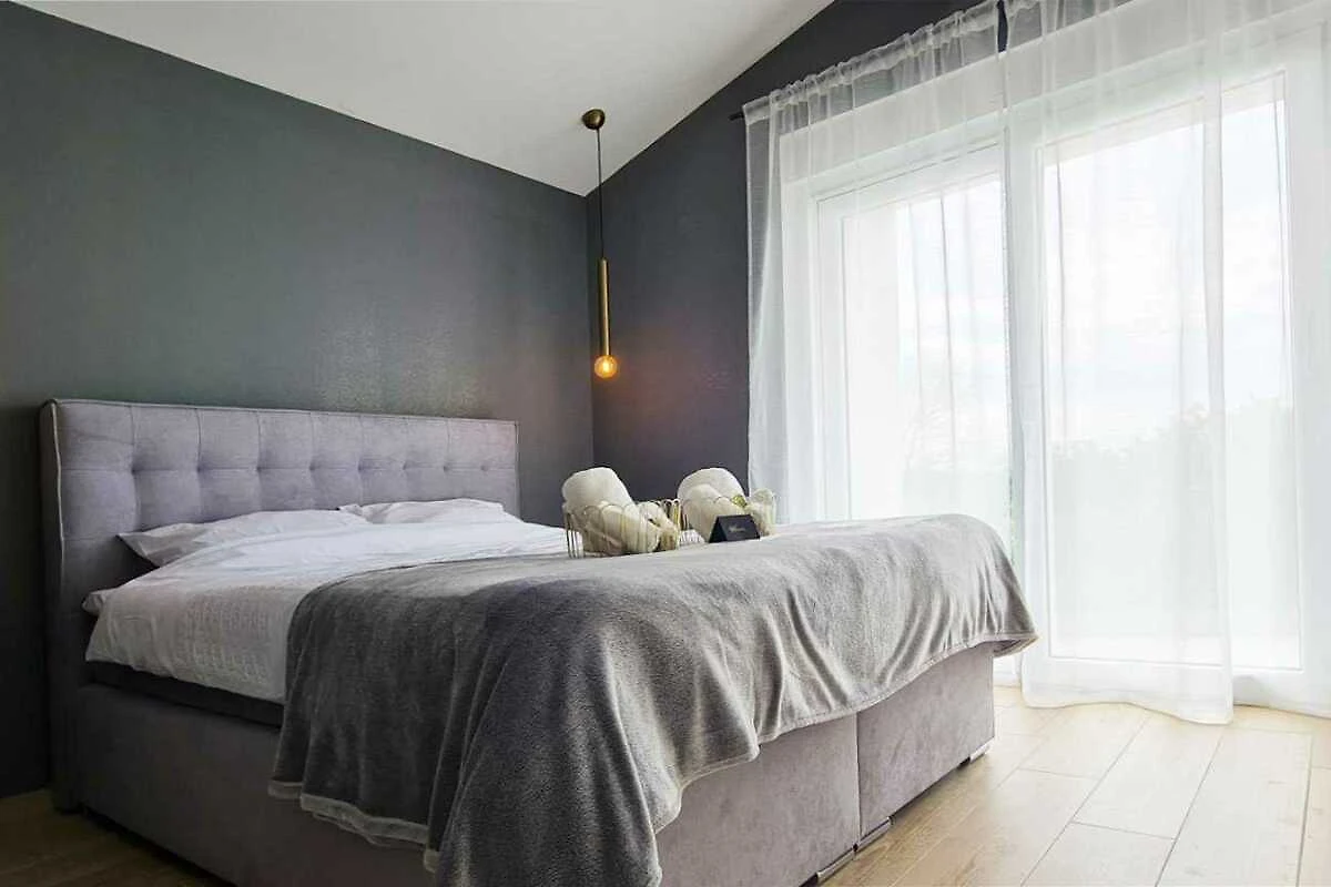 Es bietet Platz für bis zu 8 Gäste und verfügt über vier Schlafzimmer (drei mit Queensize-Betten und eines mit einem Kingsize-Bett) sowie fünf Badezimmer.